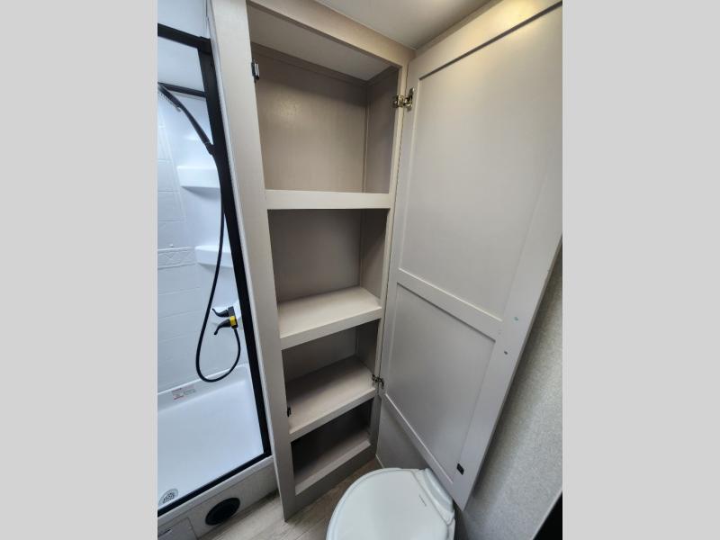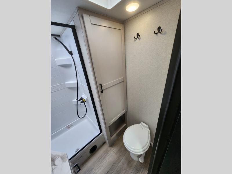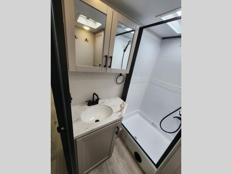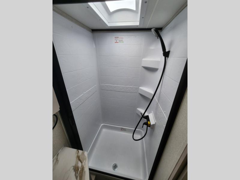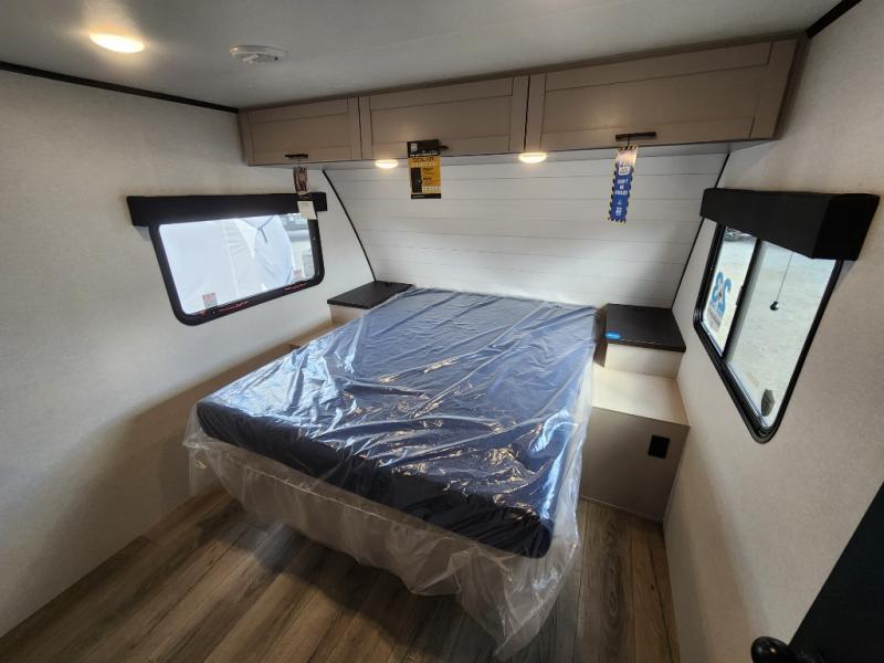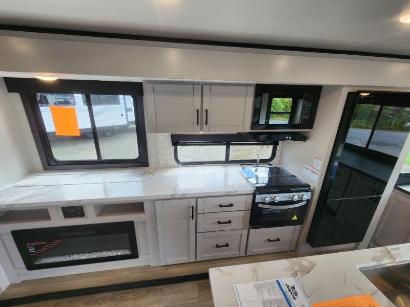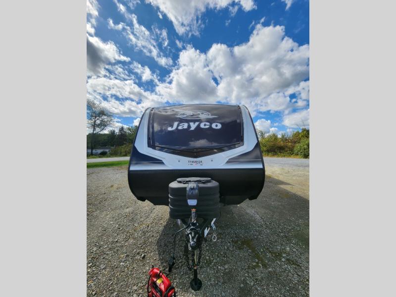 With any Jay Feather travel trailer by Jayco, you will enjoy lightweight towing, convenient exterior amenities, and at-home comforts inside! The Overlander 1 Solar Package included within the Jay Sport Package comes with a 200W solar panel and a 30-amp digital controller so you can enjoy some off-grid camping. There is also a modern graphics package with a dual-colored sidewall, LCI Solid Step fold-down aluminum tread steps on the main entry door, and Climate Shield 0 -100° F tested weather insulation package that will allow you to camp in all sorts of climates. The Customer Value Package will make time outdoors easier than ever with a power tongue jack and a Rock Solid stabilizer system, plus American-made nitro-filled Goodyear tires with self-adjusting electric brakes. More exterior features include a Keyed-Alike locking system, marine grade exterior speakers, a Magnum Truss roof system, and the list goes on! And we haven't even touched on the interior comforts, like the residential style seamless countertops and vinyl flooring throughout, decorative backsplash, handcrafted hardwood door/drawer fronts, and multiple USB charging ports to keep you going!