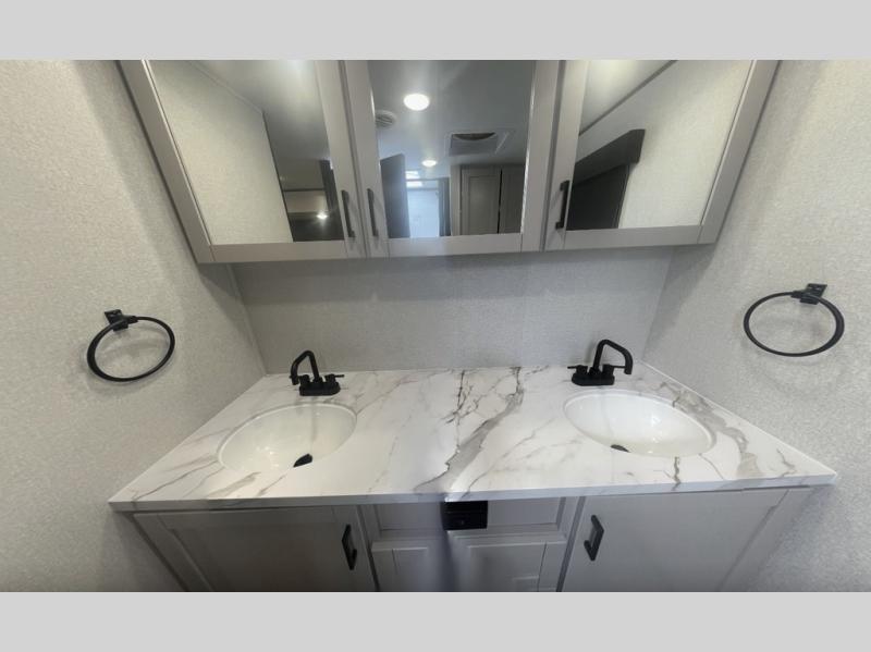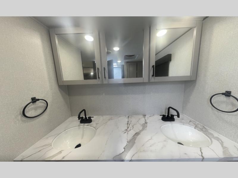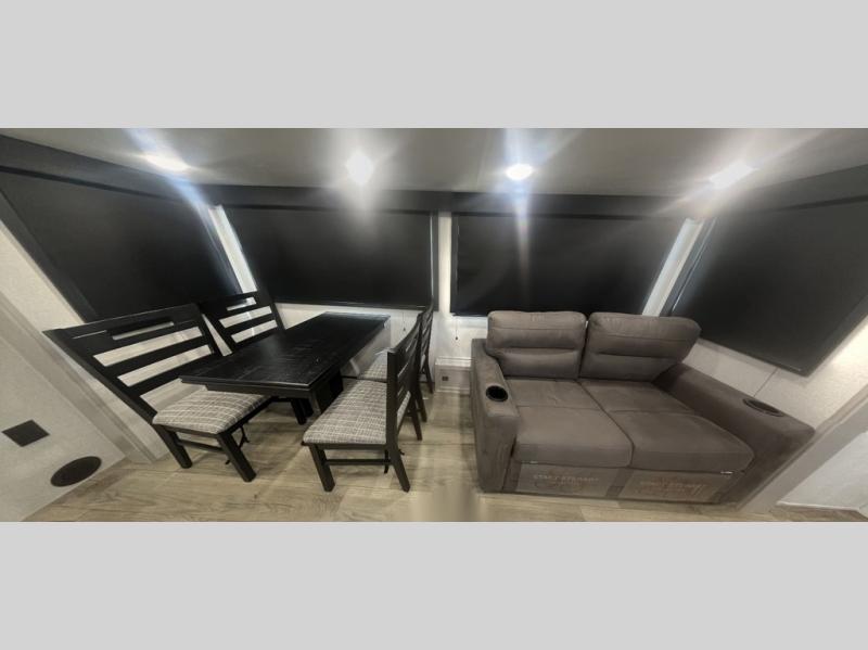 It won't be hard to find comfort in this spacious travel trailer! The large slide out in the main living area will provide more floor space to let the dog nap on the floor and let the cook whip up dinner in the kitchen. There is a tri-fold sofa and U-shaped dinette that will be perfect for meals times, relaxing, and extra sleeping space. This unit includes a full rear bath with dual bath sinks, a linen closet, plus a shower with a seat for added comfort. The front private bedroom includes a queen bed, dual nightstands, and a bedroom closet to keep your space tidy. Head outdoors to visit under the 20' awning, grab your fishing poles from the exterior storage, or fill the dogs water bowl with the external shower!