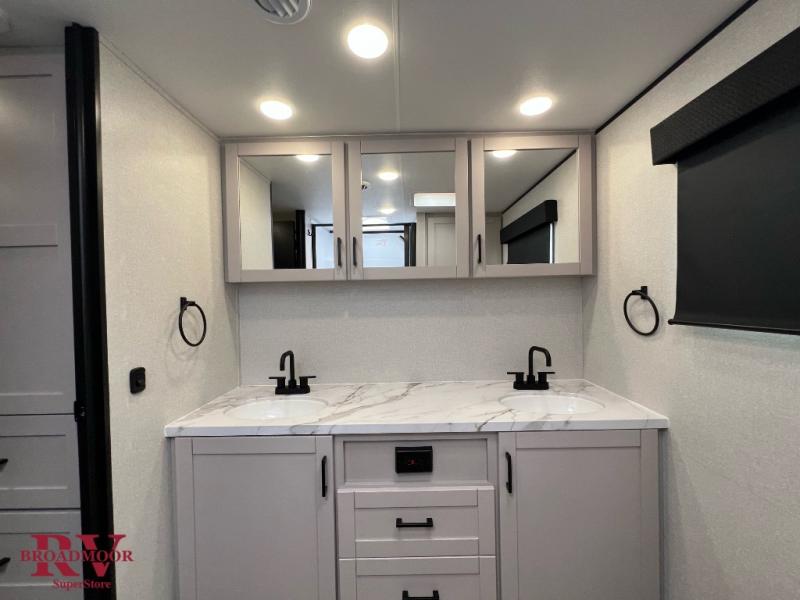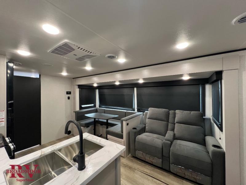 It won't be hard to find comfort in this spacious travel trailer! The large slide out in the main living area will provide more floor space to let the dog nap on the floor and let the cook whip up dinner in the kitchen. There is a tri-fold sofa and U-shaped dinette that will be perfect for meals times, relaxing, and extra sleeping space. This unit includes a full rear bath with dual bath sinks, a linen closet, plus a shower with a seat for added comfort. The front private bedroom includes a queen bed, dual nightstands, and a bedroom closet to keep your space tidy. Head outdoors to visit under the 20' awning, grab your fishing poles from the exterior storage, or fill the dogs water bowl with the external shower!