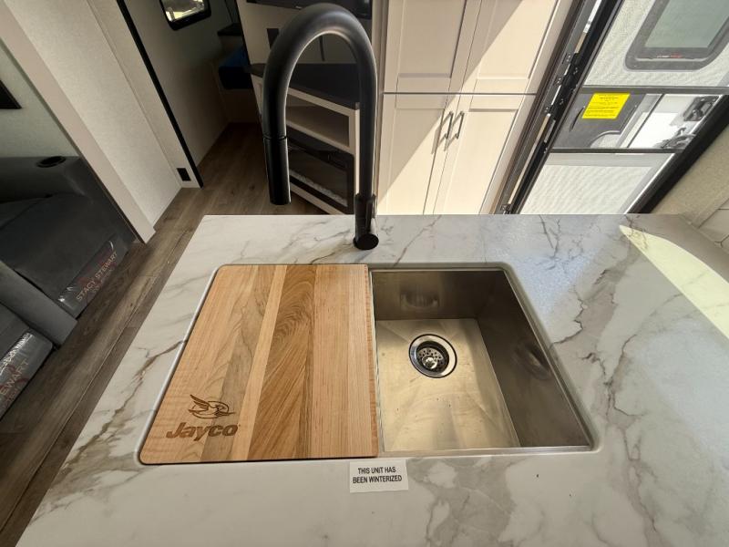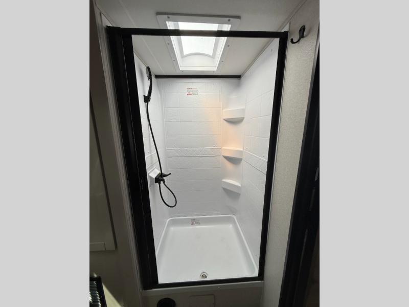 With any Jay Feather travel trailer by Jayco, you will enjoy lightweight towing, convenient exterior amenities, and at-home comforts inside! The Overlander 1 Solar Package included within the Jay Sport Package comes with a 200W solar panel and a 30-amp digital controller so you can enjoy some off-grid camping. There is also a modern graphics package with a dual-colored sidewall, LCI Solid Step fold-down aluminum tread steps on the main entry door, and Climate Shield 0 -100° F tested weather insulation package that will allow you to camp in all sorts of climates. The Customer Value Package will make time outdoors easier than ever with a power tongue jack and a Rock Solid stabilizer system, plus American-made nitro-filled Goodyear tires with self-adjusting electric brakes. More exterior features include a Keyed-Alike locking system, marine grade exterior speakers, a Magnum Truss roof system, and the list goes on! And we haven't even touched on the interior comforts, like the residential style seamless countertops and vinyl flooring throughout, decorative backsplash, handcrafted hardwood door/drawer fronts, and multiple USB charging ports to keep you going!