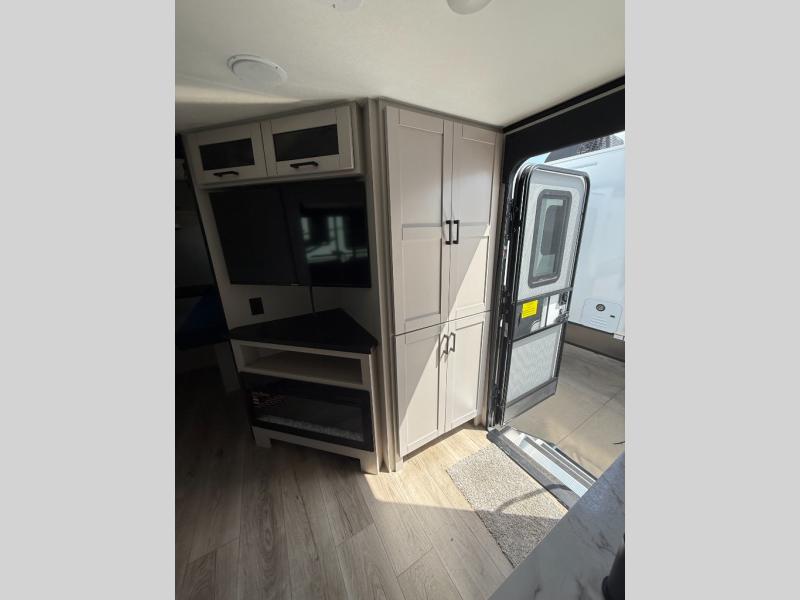 It won't be hard to find comfort in this spacious travel trailer! The large slide out in the main living area will provide more floor space to let the dog nap on the floor and let the cook whip up dinner in the kitchen. There is a tri-fold sofa and U-shaped dinette that will be perfect for meals times, relaxing, and extra sleeping space. This unit includes a full rear bath with dual bath sinks, a linen closet, plus a shower with a seat for added comfort. The front private bedroom includes a queen bed, dual nightstands, and a bedroom closet to keep your space tidy. Head outdoors to visit under the 20' awning, grab your fishing poles from the exterior storage, or fill the dogs water bowl with the external shower!