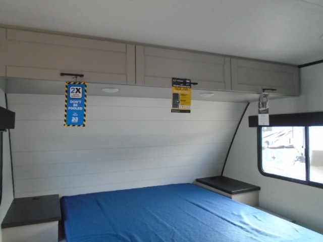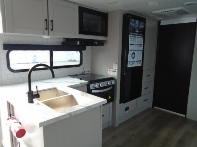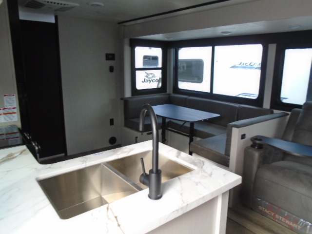 With any Jay Feather travel trailer by Jayco, you will enjoy lightweight towing, convenient exterior amenities, and at-home comforts inside! The Overlander 1 Solar Package included within the Jay Sport Package comes with a 200W solar panel and a 30-amp digital controller so you can enjoy some off-grid camping. There is also a modern graphics package, Solid fold-down step with aluminum tread steps on the main entry doorstep, and Climate Shield 0 -100° F tested weather insulation package that will allow you to camp in various types of climates. The Customer Value Package will make time outdoors easier than ever with a power tongue jack and Automotive-style aluminum rims, plus radial tires with self-adjusting electric brakes. More exterior features include a Keyed-Alike doors, a Magnum Truss roof system, and the list goes on! And we haven't even touched on the interior comforts, like the seamless countertops and Residential vinyl flooring throughout, decorative kitchen backsplash, handcrafted hardwood door/drawer fronts, and multiple USB charging ports to keep you going!