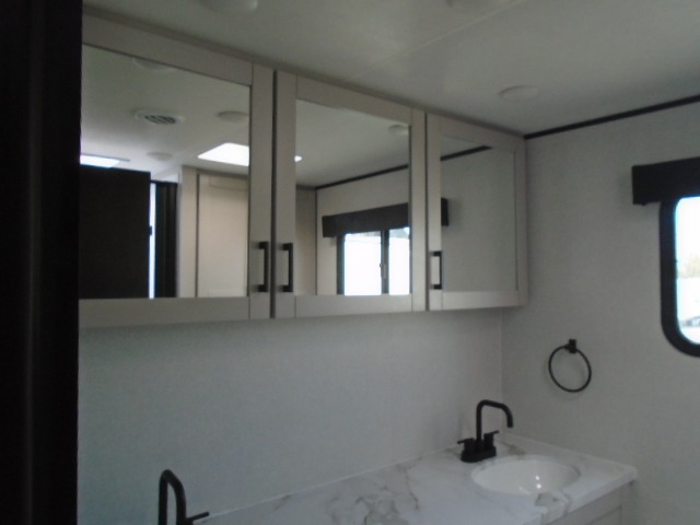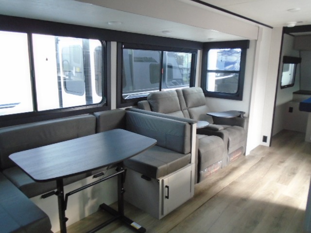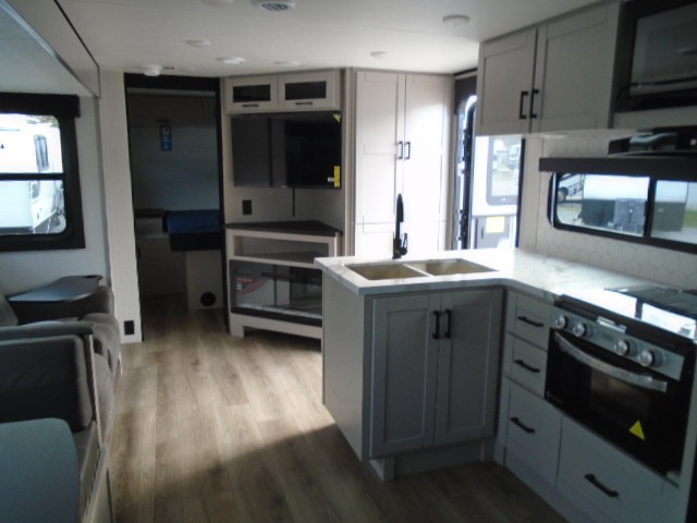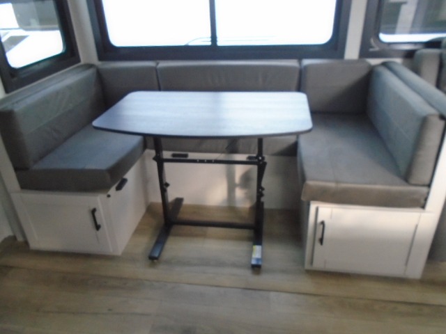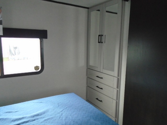 It won't be hard to find comfort in this spacious travel trailer! The large slide out in the main living area will provide more floor space to let the dog nap on the floor and let the cook whip up dinner in the kitchen. There is a tri-fold sofa and U-shaped dinette that will be perfect for meals times, relaxing, and extra sleeping space. This unit includes a full rear bath with dual bath sinks, a linen closet, plus a shower with a skylight for added comfort. The front private bedroom includes a queen bed, dual nightstands, and a bedroom closet to keep your space tidy. Head outdoors to visit under the 20' awning, grab your fishing poles from the exterior storage, or fill the dogs water bowl with the external shower!