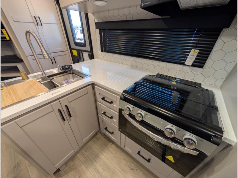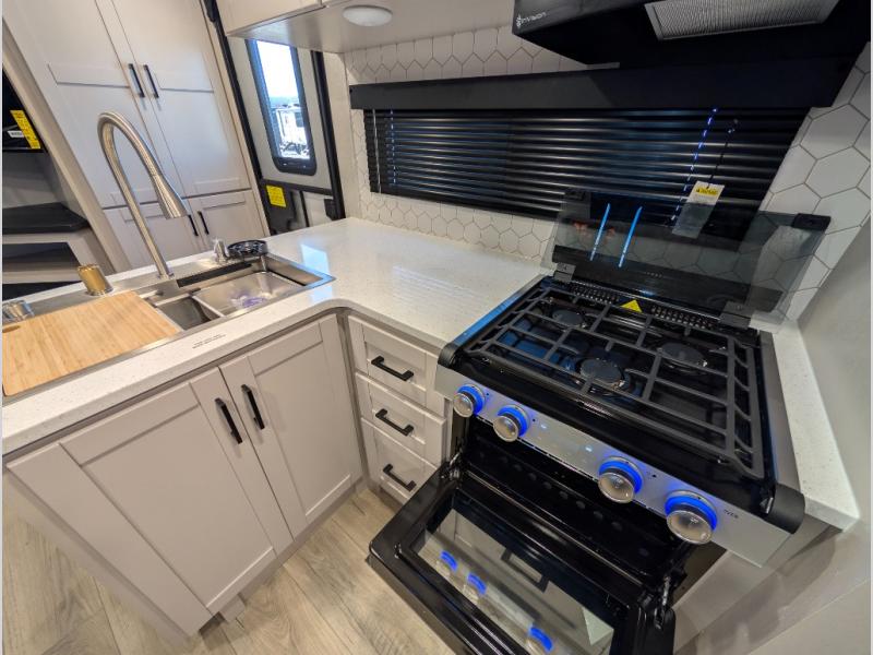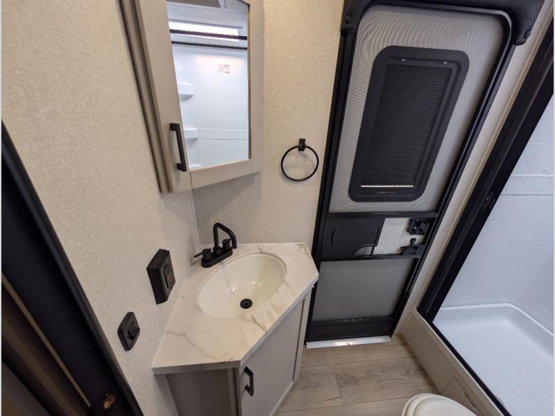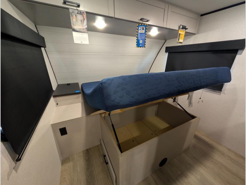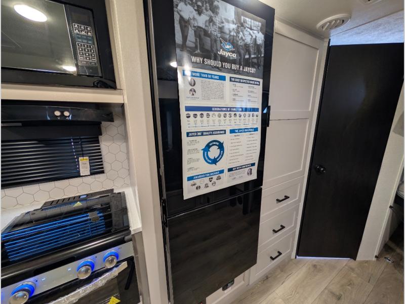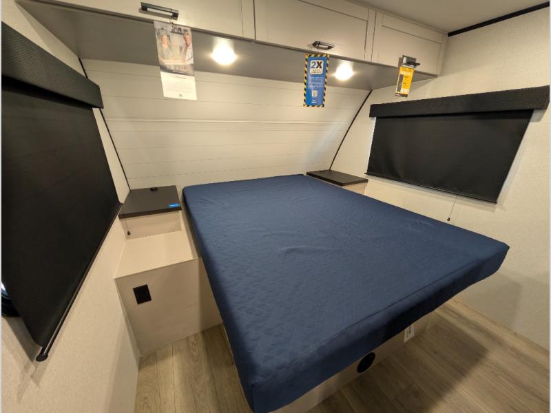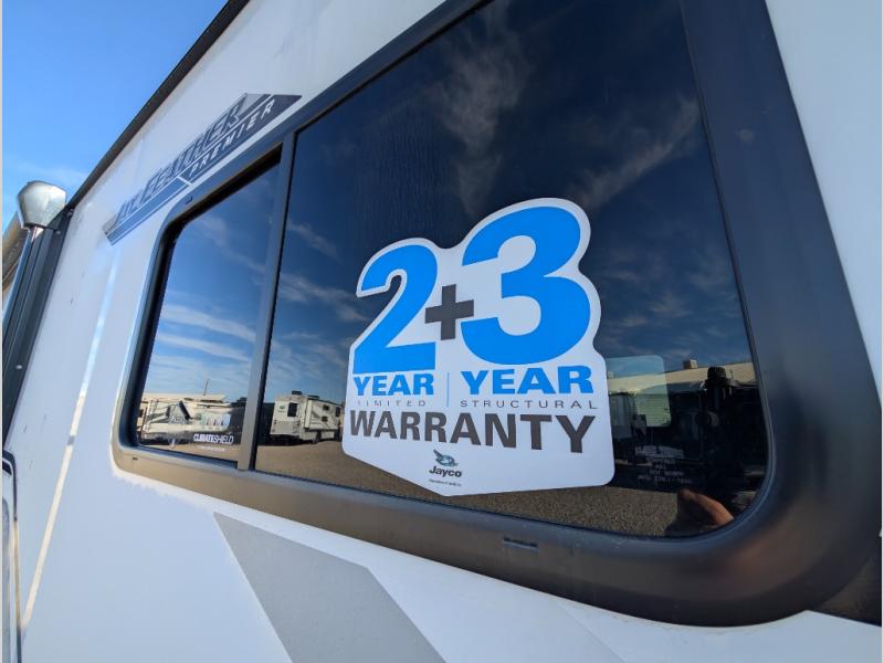 With any Jay Feather travel trailer by Jayco, you will enjoy lightweight towing, convenient exterior amenities, and at-home comforts inside! The Overlander 1 Solar Package included within the Jay Sport Package comes with a 200W solar panel and a 30-amp digital controller so you can enjoy some off-grid camping. There is also a modern graphics package with a dual-colored sidewall, LCI Solid Step fold-down aluminum tread steps on the main entry door, and Climate Shield 0 -100° F tested weather insulation package that will allow you to camp in all sorts of climates. The Customer Value Package will make time outdoors easier than ever with a power tongue jack and a Rock Solid stabilizer system, plus American-made nitro-filled Goodyear tires with self-adjusting electric brakes. More exterior features include a Keyed-Alike locking system, marine grade exterior speakers, a Magnum Truss roof system, and the list goes on! And we haven't even touched on the interior comforts, like the residential style seamless countertops and vinyl flooring throughout, decorative backsplash, handcrafted hardwood door/drawer fronts, and multiple USB charging ports to keep you going!