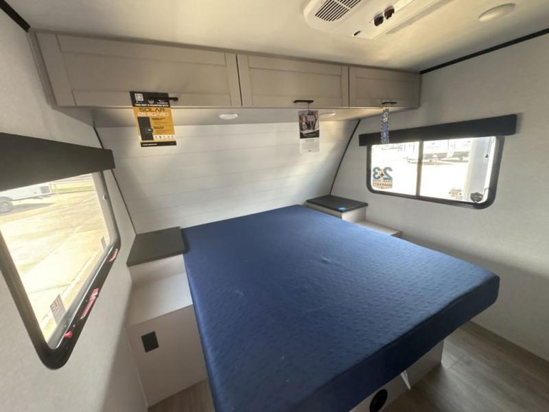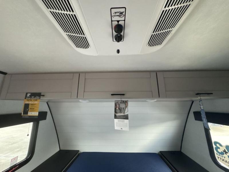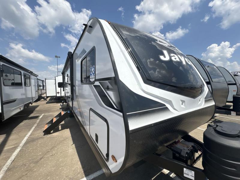 With any Jay Feather travel trailer by Jayco, you will enjoy lightweight towing, convenient exterior amenities, and at-home comforts inside! The Overlander 1 Solar Package included within the Jay Sport Package comes with a 200W solar panel and a 30-amp digital controller so you can enjoy some off-grid camping. There is also a modern graphics package with a dual-colored sidewall, LCI Solid Step fold-down aluminum tread steps on the main entry door, and Climate Shield 0 -100° F tested weather insulation package that will allow you to camp in all sorts of climates. The Customer Value Package will make time outdoors easier than ever with a power tongue jack and a Rock Solid stabilizer system, plus American-made nitro-filled Goodyear tires with self-adjusting electric brakes. More exterior features include a Keyed-Alike locking system, marine grade exterior speakers, a Magnum Truss roof system, and the list goes on! And we haven't even touched on the interior comforts, like the residential style seamless countertops and vinyl flooring throughout, decorative backsplash, handcrafted hardwood door/drawer fronts, and multiple USB charging ports to keep you going!