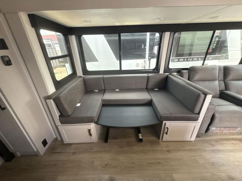 Your whole crew can join along on camping trips with this travel trailer that can sleep ten each night! Not only are there double-size bunks, but also a U-shaped dinette, tri-fold sofa, plus a queen bed in the front bedroom! There is also pass-thru storage under the bed so luggage, board games, and blankets can be kept out of the way. The chef of your group can cook indoors on the three burner cooktop or at the outside kitchen on the pull-out griddle. This model also includes a full bath with one of the dual entry doors for added convenience!