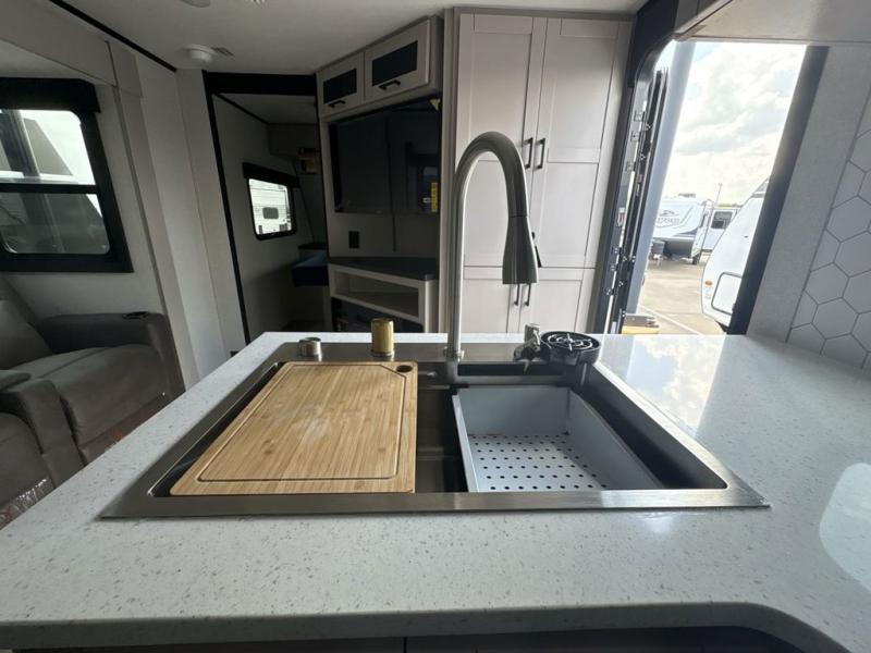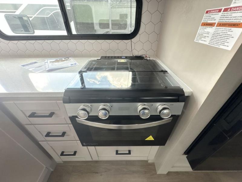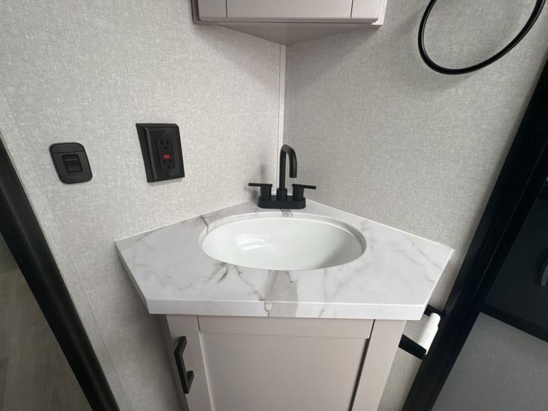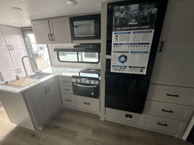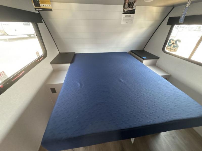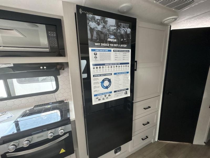 With any Jay Feather travel trailer by Jayco, you will enjoy lightweight towing, convenient exterior amenities, and at-home comforts inside! The Overlander 1 Solar Package included within the Jay Sport Package comes with a 200W solar panel and a 30-amp digital controller so you can enjoy some off-grid camping. There is also a modern graphics package with a dual-colored sidewall, LCI Solid Step fold-down aluminum tread steps on the main entry door, and Climate Shield 0 -100° F tested weather insulation package that will allow you to camp in all sorts of climates. The Customer Value Package will make time outdoors easier than ever with a power tongue jack and a Rock Solid stabilizer system, plus American-made nitro-filled Goodyear tires with self-adjusting electric brakes. More exterior features include a Keyed-Alike locking system, marine grade exterior speakers, a Magnum Truss roof system, and the list goes on! And we haven't even touched on the interior comforts, like the residential style seamless countertops and vinyl flooring throughout, decorative backsplash, handcrafted hardwood door/drawer fronts, and multiple USB charging ports to keep you going!