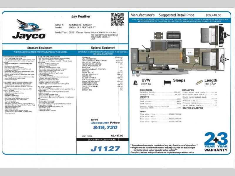 New 2026 Jayco Jay Feather 29QBH Travel Trailer
