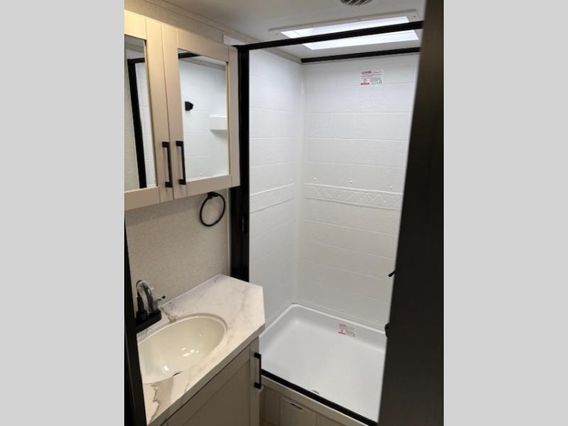 With any Jay Feather travel trailer by Jayco, you will enjoy lightweight towing, convenient exterior amenities, and at-home comforts inside! The Overlander 1 Solar Package included within the Jay Sport Package comes with a 200W solar panel and a 30-amp digital controller so you can enjoy some off-grid camping. There is also a modern graphics package, Solid fold-down step with aluminum tread steps on the main entry doorstep, and Climate Shield 0 -100° F tested weather insulation package that will allow you to camp in various types of climates. The Customer Value Package will make time outdoors easier than ever with a power tongue jack and Automotive-style aluminum rims, plus radial tires with self-adjusting electric brakes. More exterior features include a Keyed-Alike doors, a Magnum Truss roof system, and the list goes on! And we haven't even touched on the interior comforts, like the seamless countertops and Residential vinyl flooring throughout, decorative kitchen backsplash, handcrafted hardwood door/drawer fronts, and multiple USB charging ports to keep you going!