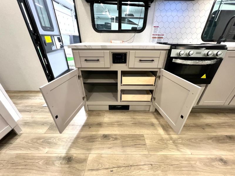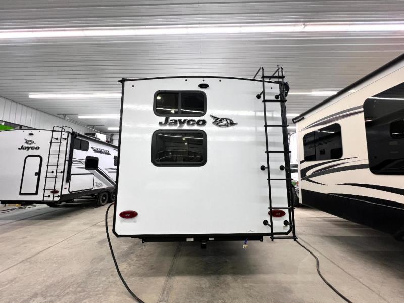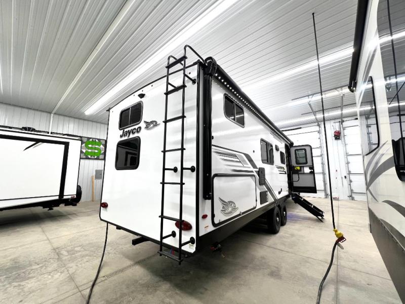 With any Jay Feather travel trailer by Jayco, you will enjoy lightweight towing, convenient exterior amenities, and at-home comforts inside! The Overlander 1 Solar Package included within the Jay Sport Package comes with a 200W solar panel and a 30-amp digital controller so you can enjoy some off-grid camping. There is also a modern graphics package, Solid fold-down step with aluminum tread steps on the main entry doorstep, and Climate Shield 0 -100° F tested weather insulation package that will allow you to camp in various types of climates. The Customer Value Package will make time outdoors easier than ever with a power tongue jack and Automotive-style aluminum rims, plus radial tires with self-adjusting electric brakes. More exterior features include a Keyed-Alike doors, a Magnum Truss roof system, and the list goes on! And we haven't even touched on the interior comforts, like the seamless countertops and Residential vinyl flooring throughout, decorative kitchen backsplash, handcrafted hardwood door/drawer fronts, and multiple USB charging ports to keep you going!