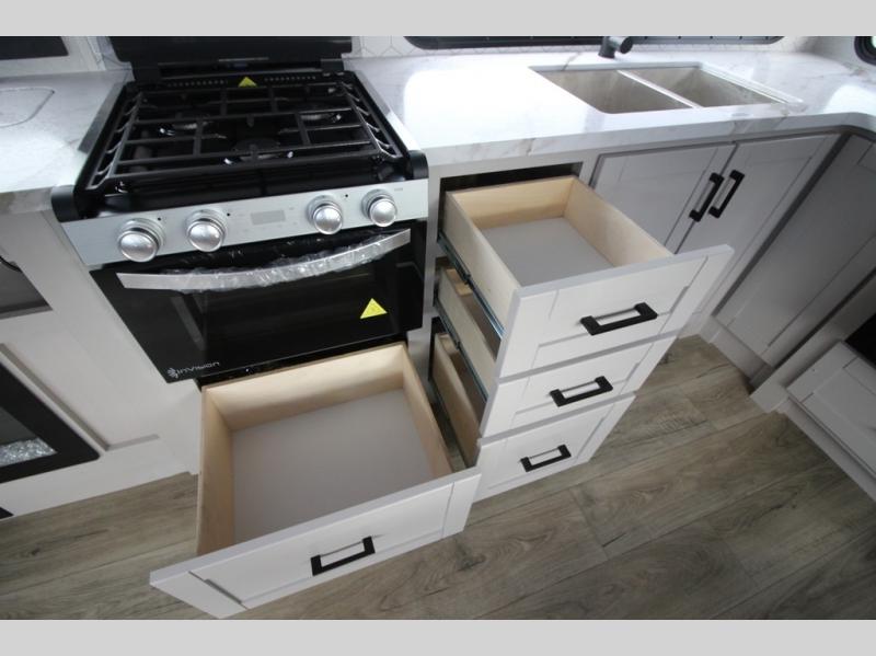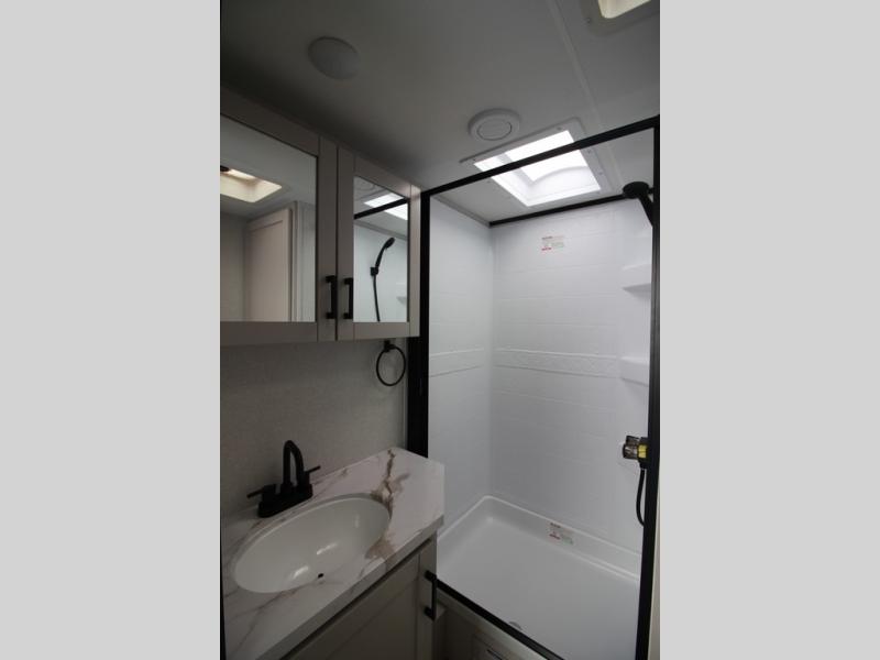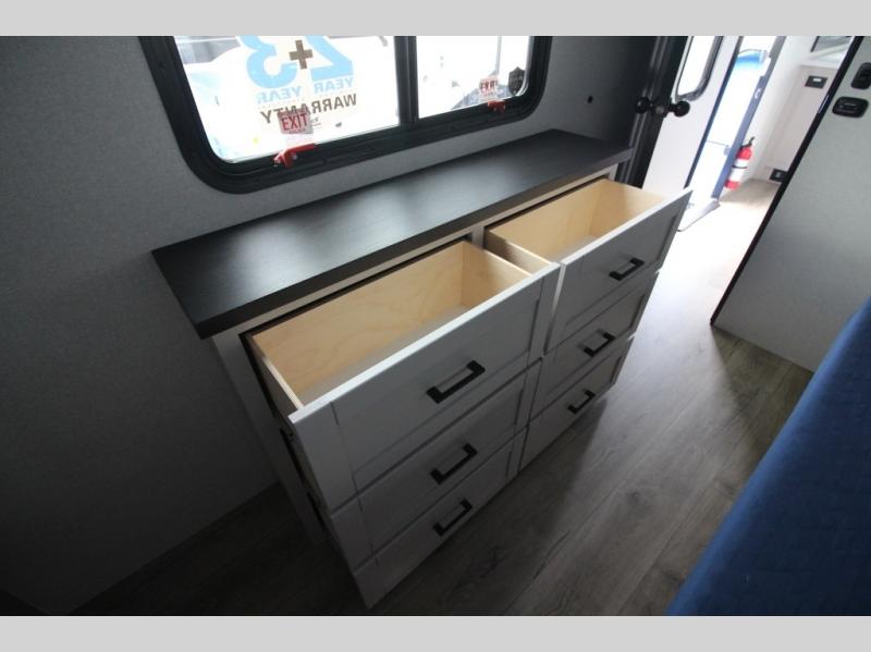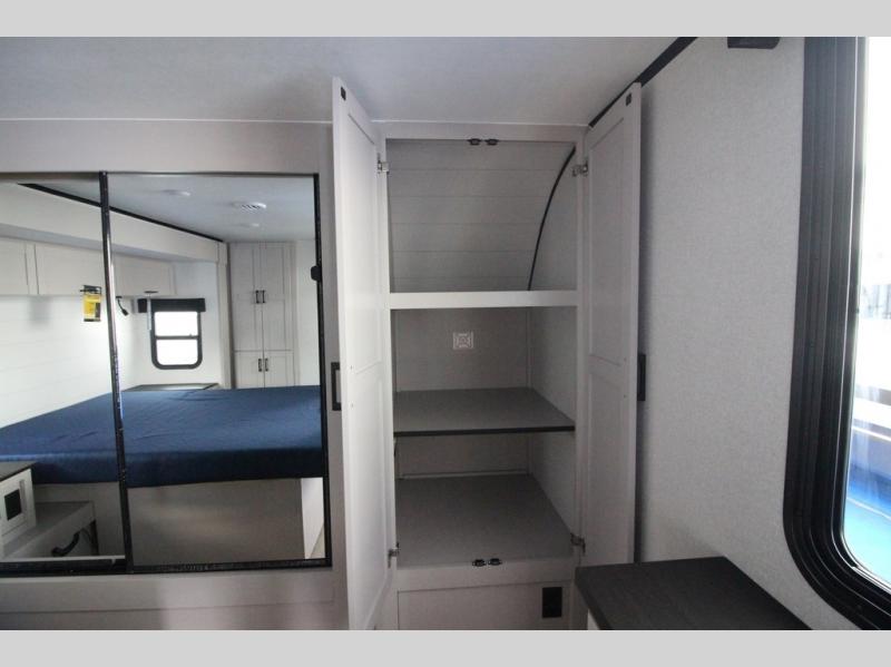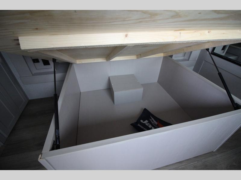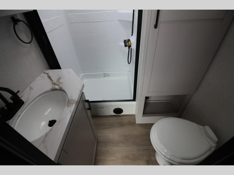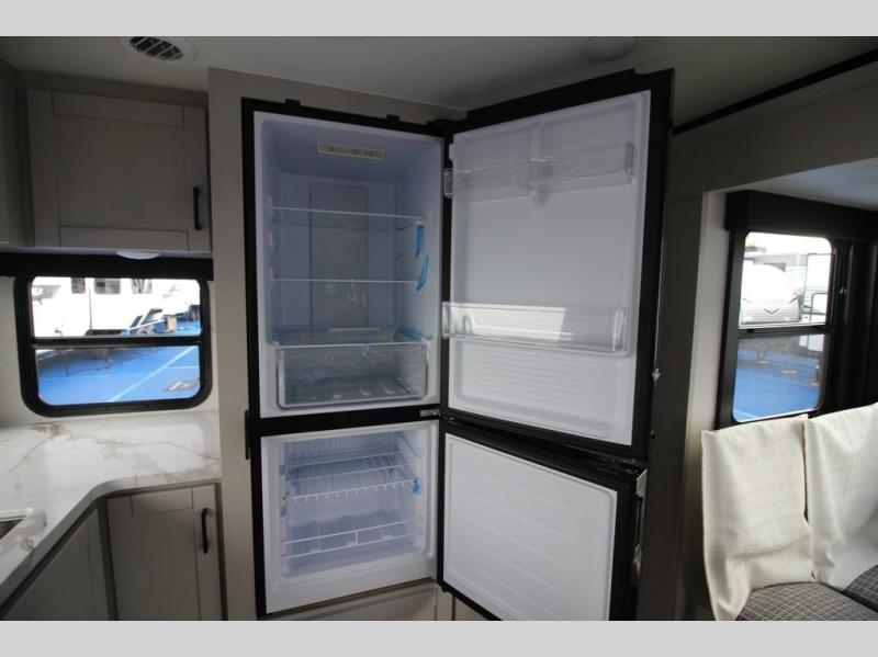 With any Jay Feather travel trailer by Jayco, you will enjoy lightweight towing, convenient exterior amenities, and at-home comforts inside! The Overlander 1 Solar Package included within the Jay Sport Package comes with a 200W solar panel and a 30-amp digital controller so you can enjoy some off-grid camping. There is also a modern graphics package with a dual-colored sidewall, LCI Solid Step fold-down aluminum tread steps on the main entry door, and Climate Shield 0 -100° F tested weather insulation package that will allow you to camp in all sorts of climates. The Customer Value Package will make time outdoors easier than ever with a power tongue jack and a Rock Solid stabilizer system, plus American-made nitro-filled Goodyear tires with self-adjusting electric brakes. More exterior features include a Keyed-Alike locking system, marine grade exterior speakers, a Magnum Truss roof system, and the list goes on! And we haven't even touched on the interior comforts, like the residential style seamless countertops and vinyl flooring throughout, decorative backsplash, handcrafted hardwood door/drawer fronts, and multiple USB charging ports to keep you going!