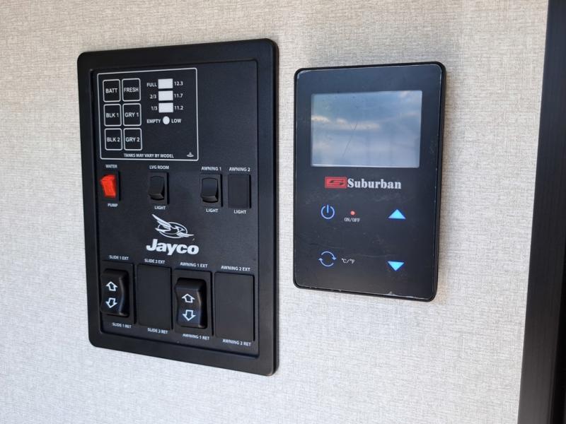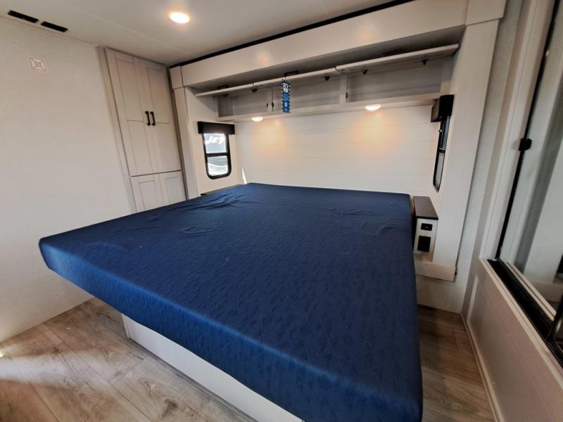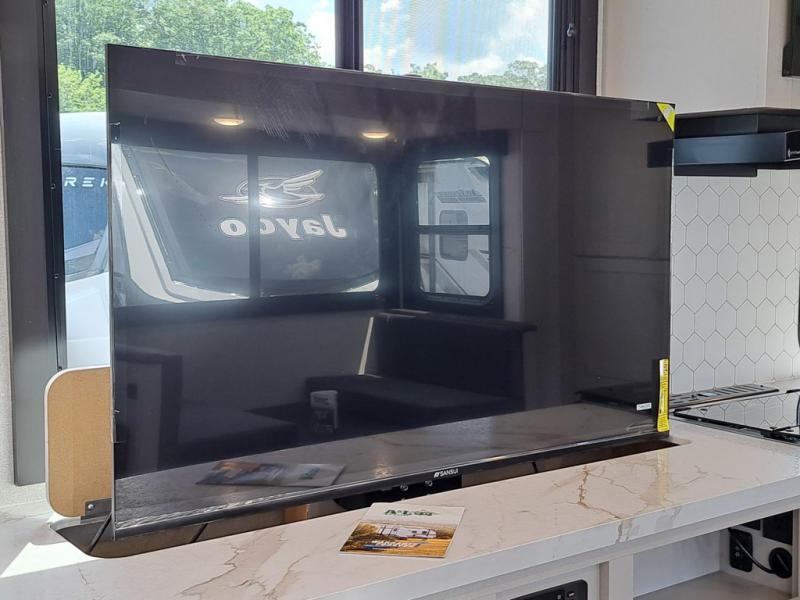 With any Jay Feather travel trailer by Jayco, you will enjoy lightweight towing, convenient exterior amenities, and at-home comforts inside! The Overlander 1 Solar Package included within the Jay Sport Package comes with a 200W solar panel and a 30-amp digital controller so you can enjoy some off-grid camping. There is also a modern graphics package with a dual-colored sidewall, LCI Solid Step fold-down aluminum tread steps on the main entry door, and Climate Shield 0 -100° F tested weather insulation package that will allow you to camp in all sorts of climates. The Customer Value Package will make time outdoors easier than ever with a power tongue jack and a Rock Solid stabilizer system, plus American-made nitro-filled Goodyear tires with self-adjusting electric brakes. More exterior features include a Keyed-Alike locking system, marine grade exterior speakers, a Magnum Truss roof system, and the list goes on! And we haven't even touched on the interior comforts, like the residential style seamless countertops and vinyl flooring throughout, decorative backsplash, handcrafted hardwood door/drawer fronts, and multiple USB charging ports to keep you going!