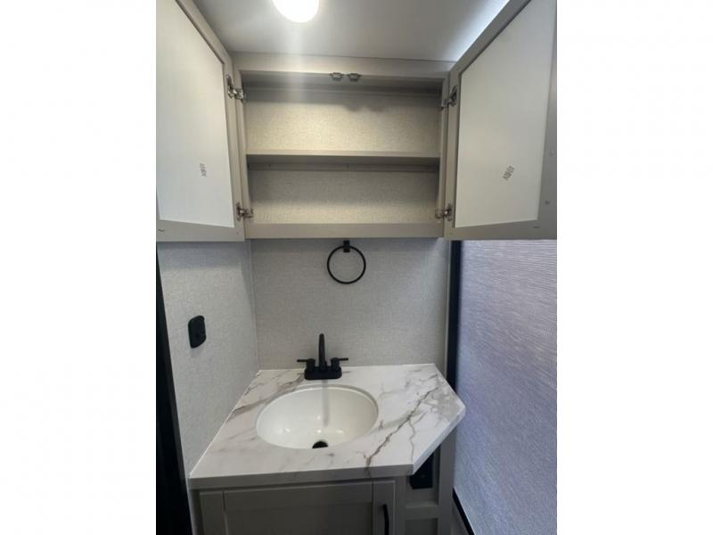 With any Jay Feather travel trailer by Jayco, you will enjoy lightweight towing, convenient exterior amenities, and at-home comforts inside! The Overlander 1 Solar Package included within the Jay Sport Package comes with a 200W solar panel and a 30-amp digital controller so you can enjoy some off-grid camping. There is also a modern graphics package with a dual-colored sidewall, LCI Solid Step fold-down aluminum tread steps on the main entry door, and Climate Shield 0 -100° F tested weather insulation package that will allow you to camp in all sorts of climates. The Customer Value Package will make time outdoors easier than ever with a power tongue jack and a Rock Solid stabilizer system, plus American-made nitro-filled Goodyear tires with self-adjusting electric brakes. More exterior features include a Keyed-Alike locking system, marine grade exterior speakers, a Magnum Truss roof system, and the list goes on! And we haven't even touched on the interior comforts, like the residential style seamless countertops and vinyl flooring throughout, decorative backsplash, handcrafted hardwood door/drawer fronts, and multiple USB charging ports to keep you going!