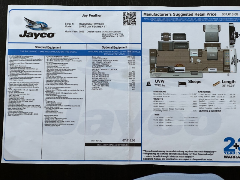 New 2026 Jayco Jay Feather 30RKB Travel Trailer