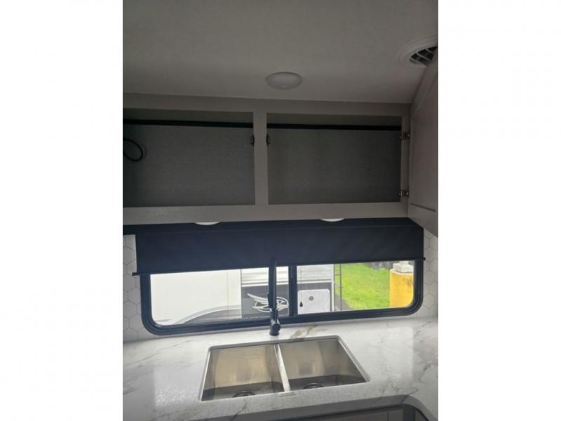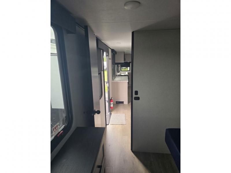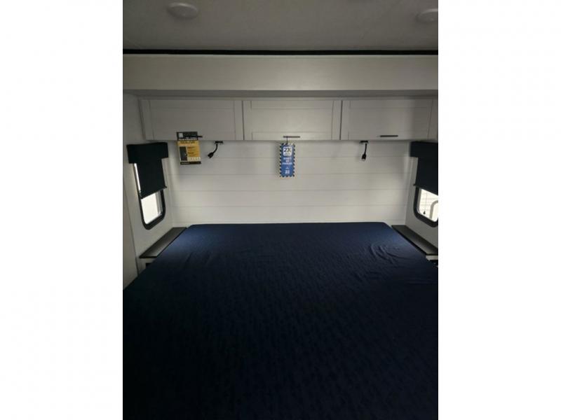 With any Jay Feather travel trailer by Jayco, you will enjoy lightweight towing, convenient exterior amenities, and at-home comforts inside! The Overlander 1 Solar Package included within the Jay Sport Package comes with a 200W solar panel and a 30-amp digital controller so you can enjoy some off-grid camping. There is also a modern graphics package, Solid fold-down step with aluminum tread steps on the main entry doorstep, and Climate Shield 0 -100° F tested weather insulation package that will allow you to camp in various types of climates. The Customer Value Package will make time outdoors easier than ever with a power tongue jack and Automotive-style aluminum rims, plus radial tires with self-adjusting electric brakes. More exterior features include a Keyed-Alike doors, a Magnum Truss roof system, and the list goes on! And we haven't even touched on the interior comforts, like the seamless countertops and Residential vinyl flooring throughout, decorative kitchen backsplash, handcrafted hardwood door/drawer fronts, and multiple USB charging ports to keep you going!