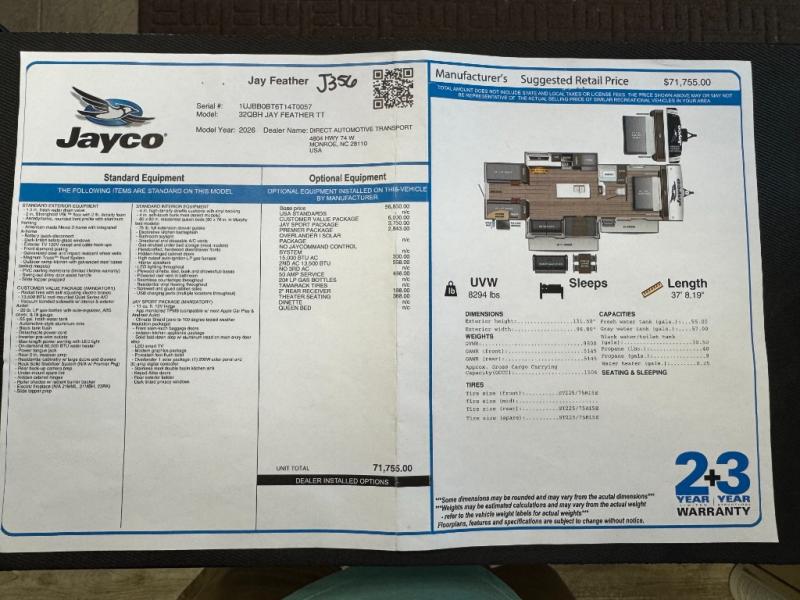 New 2026 Jayco Jay Feather 32QBH Travel Trailer