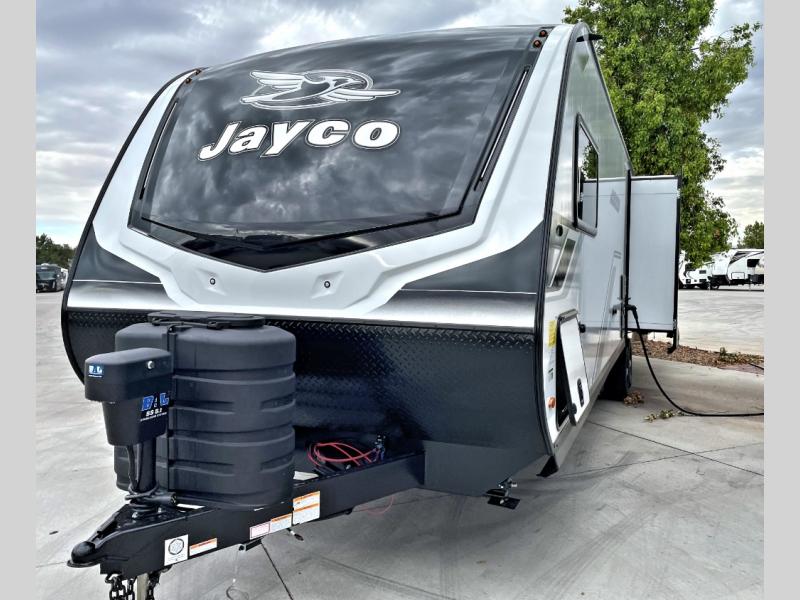 With any Jay Feather travel trailer by Jayco, you will enjoy lightweight towing, convenient exterior amenities, and at-home comforts inside! The Overlander 1 Solar Package included within the Jay Sport Package comes with a 200W solar panel and a 30-amp digital controller so you can enjoy some off-grid camping. There is also a modern graphics package with a dual-colored sidewall, LCI Solid Step fold-down aluminum tread steps on the main entry door, and Climate Shield 0 -100° F tested weather insulation package that will allow you to camp in all sorts of climates. The Customer Value Package will make time outdoors easier than ever with a power tongue jack and a Rock Solid stabilizer system, plus American-made nitro-filled Goodyear tires with self-adjusting electric brakes. More exterior features include a Keyed-Alike locking system, marine grade exterior speakers, a Magnum Truss roof system, and the list goes on! And we haven't even touched on the interior comforts, like the residential style seamless countertops and vinyl flooring throughout, decorative backsplash, handcrafted hardwood door/drawer fronts, and multiple USB charging ports to keep you going!