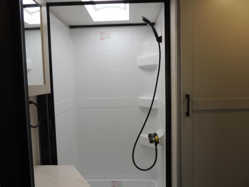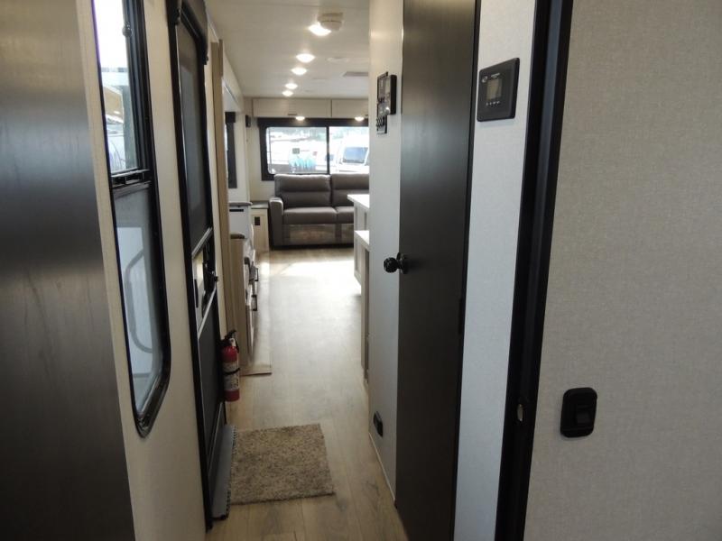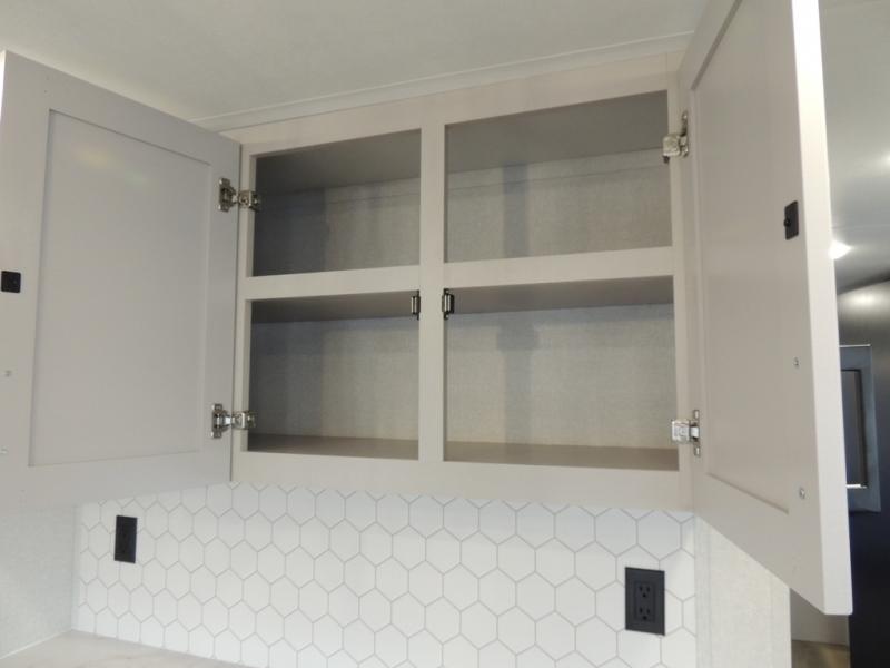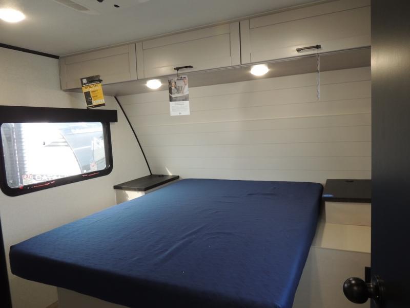 You'll love every minute spent in this rear living travel trailer! There are dual opposing slides in the combined kitchen and living area plus ample counter space and overhead storage for your things. Whether you're dining at the booth dinette, relaxing on the theater seating, or taking a rest on the rear tri-fold sofa, you're sure to have a great time. The full bath includes a shower with a skylight, a medicine cabinet, plus a linen closet to keep fresh towels close by. When you're ready for some shut-eye, the front private bedroom with a queen bed is sure to make you happy!