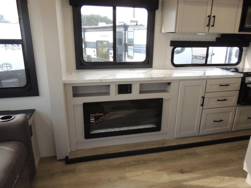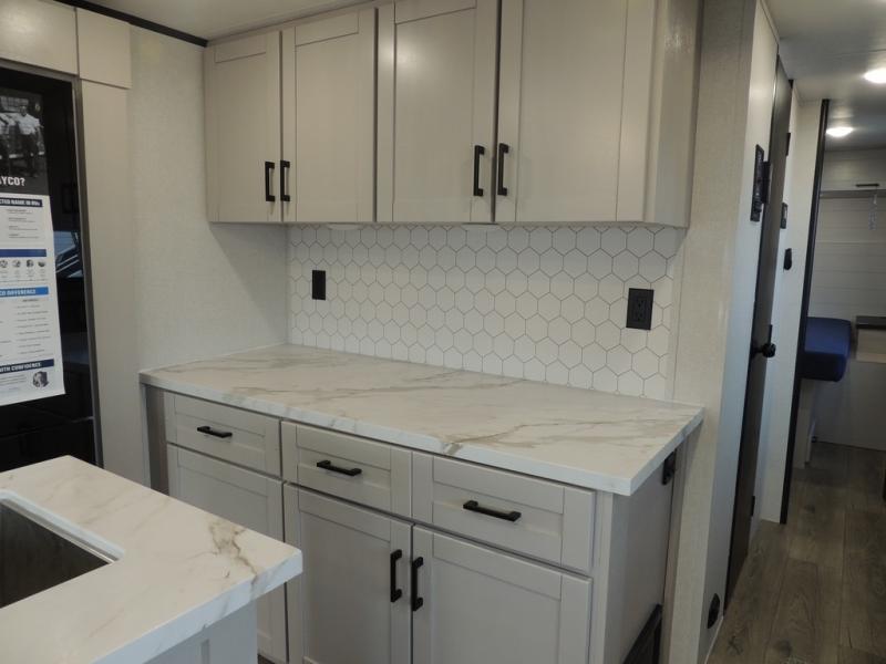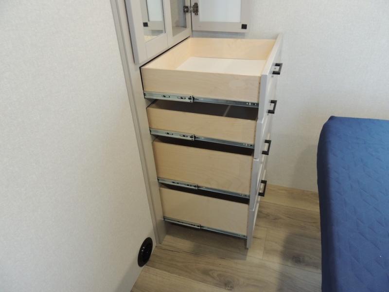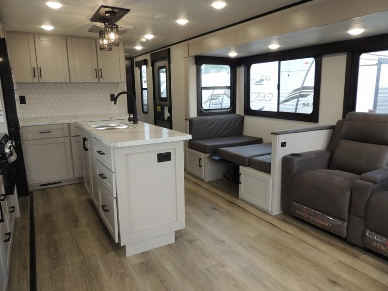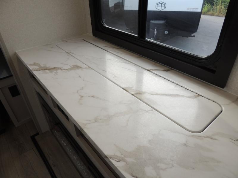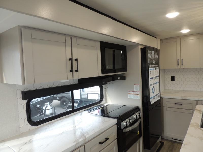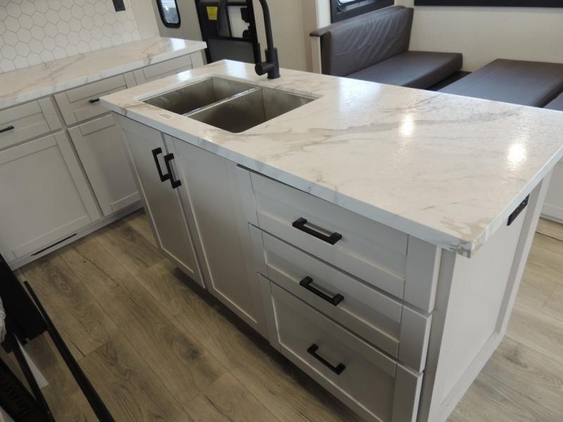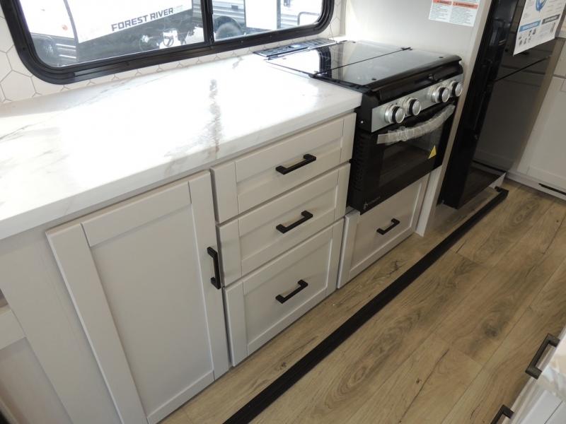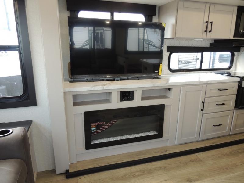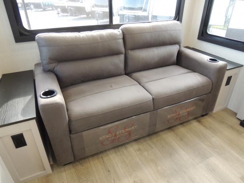You'll love every minute spent in this rear living travel trailer! There are dual opposing slides in the combined kitchen and living area plus ample counter space and overhead storage for your things. Whether you're dining at the booth dinette, relaxing on the theater seating, or taking a rest on the rear tri-fold sofa, you're sure to have a great time. The full bath includes a shower with a skylight, a medicine cabinet, plus a linen closet to keep fresh towels close by. When you're ready for some shut-eye, the front private bedroom with a queen bed is sure to make you happy!