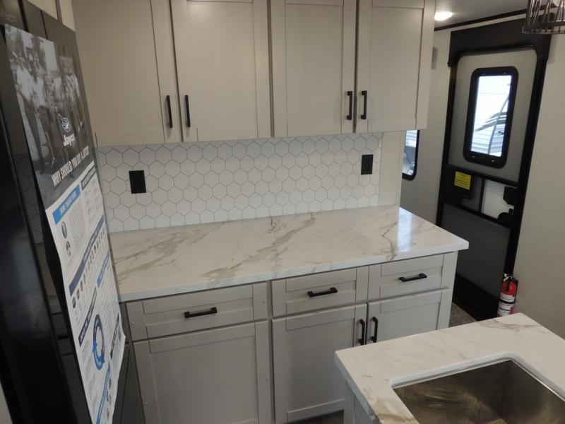 With any Jay Feather travel trailer by Jayco, you will enjoy lightweight towing, convenient exterior amenities, and at-home comforts inside! The Overlander 1 Solar Package included within the Jay Sport Package comes with a 200W solar panel and a 30-amp digital controller so you can enjoy some off-grid camping. There is also a modern graphics package, Solid fold-down step with aluminum tread steps on the main entry doorstep, and Climate Shield 0 -100° F tested weather insulation package that will allow you to camp in various types of climates. The Customer Value Package will make time outdoors easier than ever with a power tongue jack and Automotive-style aluminum rims, plus radial tires with self-adjusting electric brakes. More exterior features include a Keyed-Alike doors, a Magnum Truss roof system, and the list goes on! And we haven't even touched on the interior comforts, like the seamless countertops and Residential vinyl flooring throughout, decorative kitchen backsplash, handcrafted hardwood door/drawer fronts, and multiple USB charging ports to keep you going!