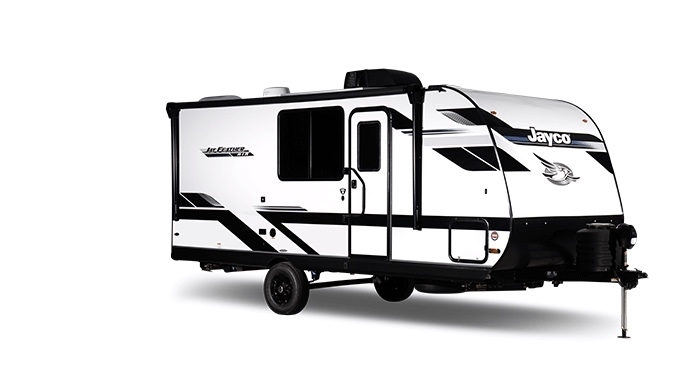 With any Jay Feather Air travel trailer by Jayco, you will enjoy lightweight towing and a variety of features to make each camping trip count! The Climate Shield insulation system helps extend your camping season by keeping you comfortable even in extreme weather conditions, and the Rock Solid stabilizer system means set up will be a breeze. An 18" rear roof ladder lets you easily clean the top of your Magnum Truss roof, and the 2" receiver will be perfect for your bike rack. The Overland 1 Solar Package with a 200W solar panel and 30-amp controller will provide off-grid capabilities, or you can can choose the optional Overland 2 Solar Package with two panels instead! Each Jay Feather Air includes residential-style seamless countertops inside, along with stainless steel sinks, decorative backsplash, and decorative roller shades with a reflective barrier to help keep the sun's rays out.