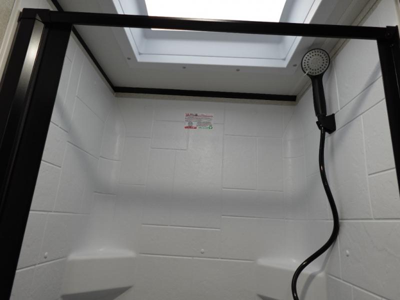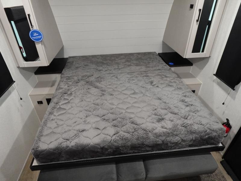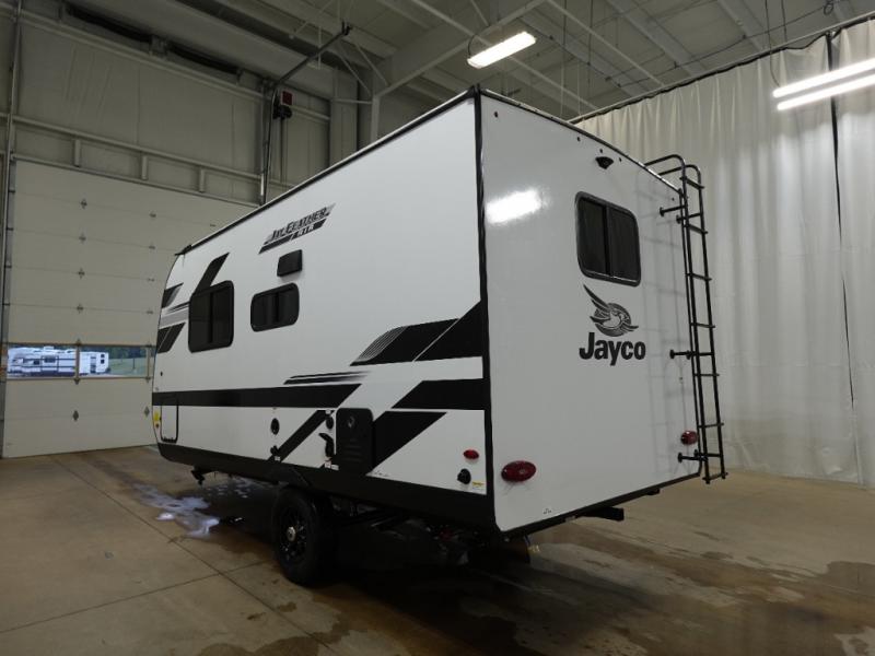 With any Jay Feather Air travel trailer by Jayco, you will enjoy lightweight towing and a variety of features to make each camping trip count! The Climate Shield insulation system helps extend your camping season by keeping you comfortable even in extreme weather conditions, and the Rock Solid stabilizer system means set up will be a breeze. An 18" rear roof ladder lets you easily clean the top of your Magnum Truss roof, and the 2" receiver will be perfect for your bike rack. The Overland 1 Solar Package with a 200W solar panel and 30-amp controller will provide off-grid capabilities, or you can can choose the optional Overland 2 Solar Package with two panels instead! Each Jay Feather Air includes residential-style seamless countertops inside, along with stainless steel sinks, decorative backsplash, and decorative roller shades with a reflective barrier to help keep the sun's rays out.