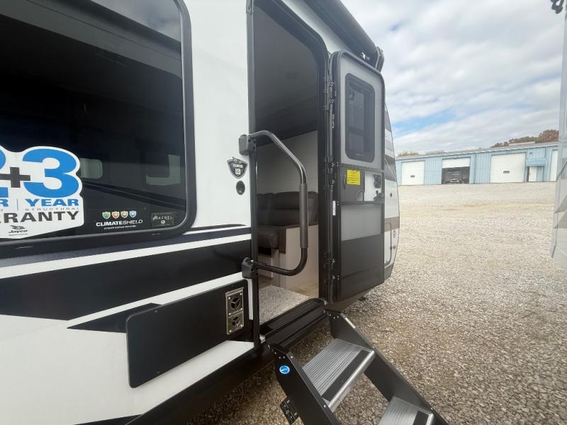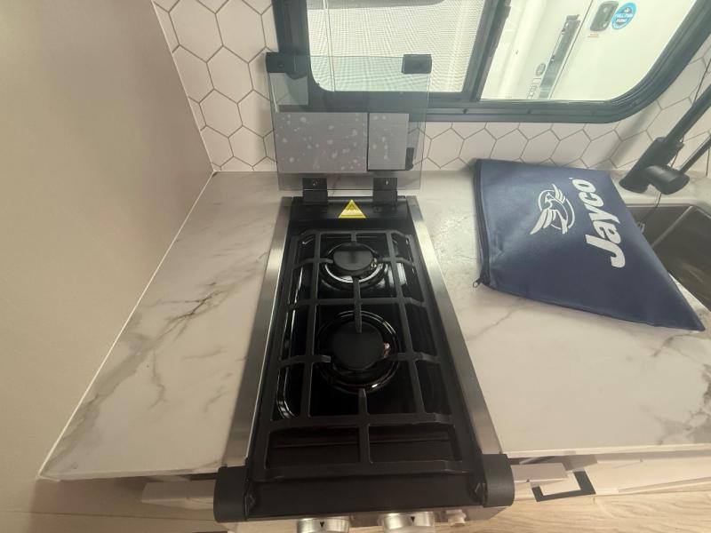 With any Jay Feather Air travel trailer by Jayco, you will enjoy lightweight towing and a variety of features to make each camping trip count! The Climate Shield insulation system helps extend your camping season by keeping you comfortable even in extreme weather conditions, and the Rock Solid stabilizer system means set up will be a breeze. An 18" rear roof ladder lets you easily clean the top of your Magnum Truss roof, and the 2" receiver will be perfect for your bike rack. The Overland 1 Solar Package with a 200W solar panel and 30-amp controller will provide off-grid capabilities, or you can can choose the optional Overland 2 Solar Package with two panels instead! Each Jay Feather Air includes residential-style seamless countertops inside, along with stainless steel sinks, decorative backsplash, and decorative roller shades with a reflective barrier to help keep the sun's rays out.