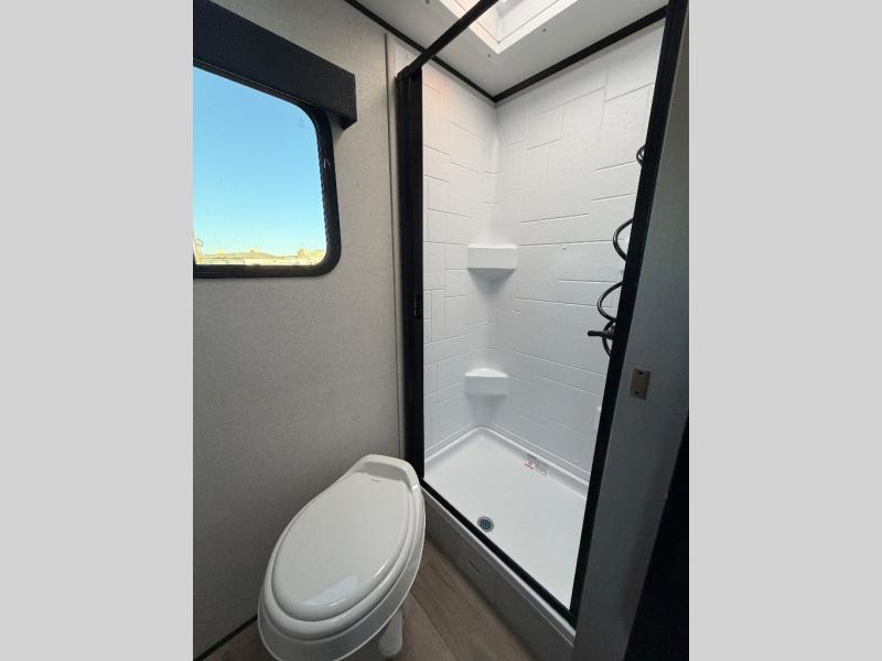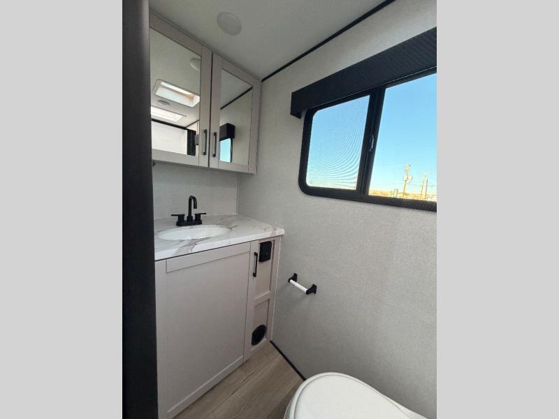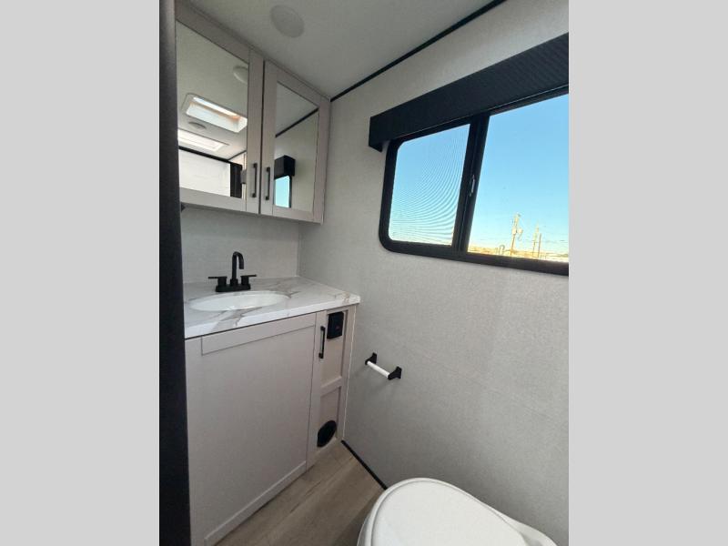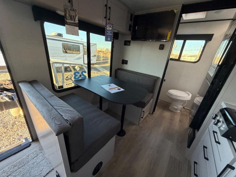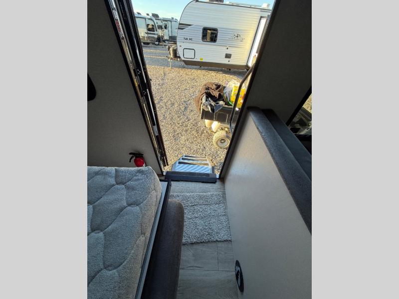 This is the perfect travel trailer for two to three campers! You'll have plenty of space during the day since there is a sofa up front, with a Murphy bed that can be folded down when you're ready for bed. There are also dual bedside wardrobes and nightstands to keep your space tidy. Breakfast can be made on the two burner cooktop or in the convection microwave, and there is a booth dinette where you can dine together. If the weather is nice, you may just find yourselves cooking on the exterior griddle and dining under the 13' awning! The full rear bath is sure to come in handy, and there is plenty of storage throughout to keep all your belongings put away!