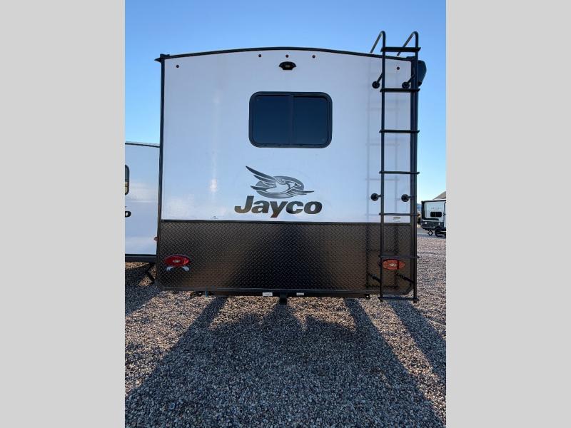 With any Jay Feather Air travel trailer by Jayco, you will enjoy lightweight towing and a variety of features to make each camping trip count! The Climate Shield insulation system helps extend your camping season by keeping you comfortable even in extreme weather conditions, and the Rock Solid stabilizer system means set up will be a breeze. An 18" rear roof ladder lets you easily clean the top of your Magnum Truss roof, and the 2" receiver will be perfect for your bike rack. The Overland 1 Solar Package with a 200W solar panel and 30-amp controller will provide off-grid capabilities, or you can can choose the optional Overland 2 Solar Package with two panels instead! Each Jay Feather Air includes residential-style seamless countertops inside, along with stainless steel sinks, decorative backsplash, and decorative roller shades with a reflective barrier to help keep the sun's rays out.