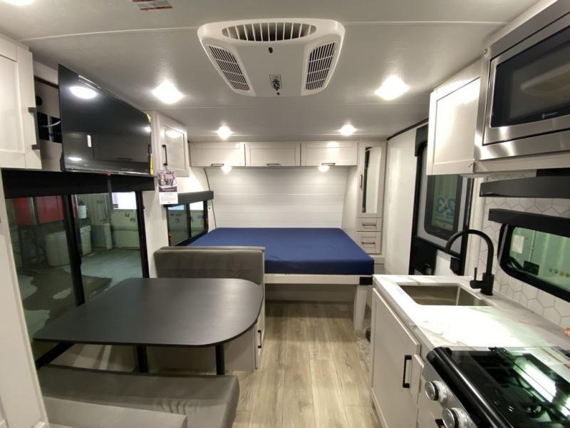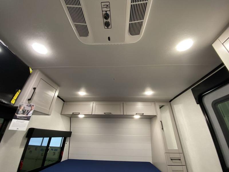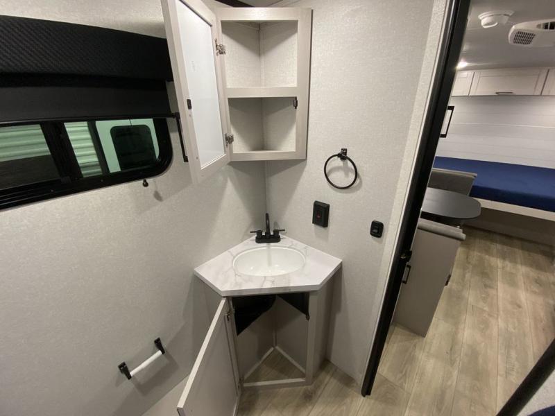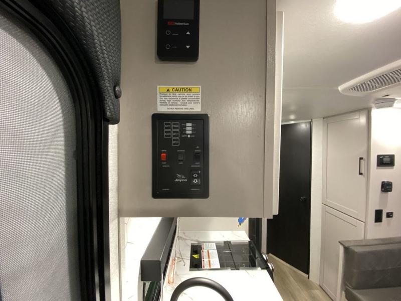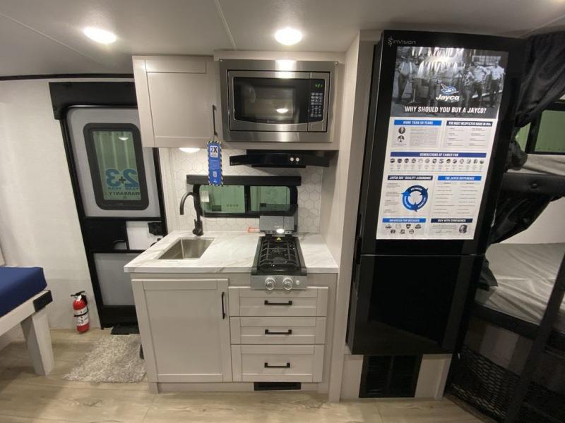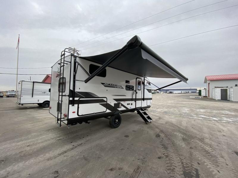 With any Jay Feather Air travel trailer by Jayco, you will enjoy lightweight towing and a variety of features to make each camping trip count! The Climate Shield insulation system helps by keeping you comfortable even in extreme weather conditions, and the Rock Solid jacks create a firm, steady foundation so your trailer feels solid underfoot and an easy setup. A rear roof ladder lets you easily clean the top of your Magnum Truss roof, and the 2" receiver will be perfect for your bike rack. The Overland 1 Solar Package with a 200W solar panel and 30-amp controller will provide off-grid capabilities, or you can choose the optional Overland 2 Solar Package with two panels instead! Each Jay Feather Air includes seamless countertops throughout, along with stainless steel sinks, decorative backsplash, and roller shades with a radiant barrier backer to help keep the sun's rays out.