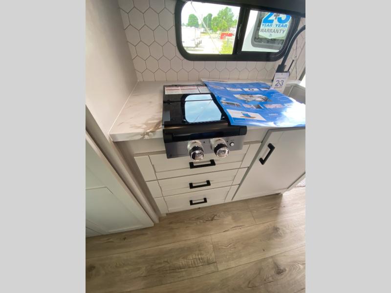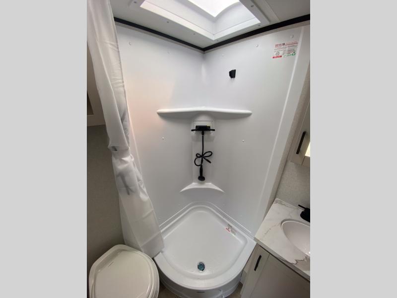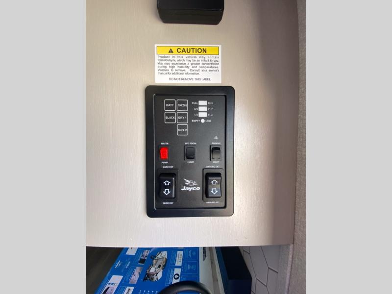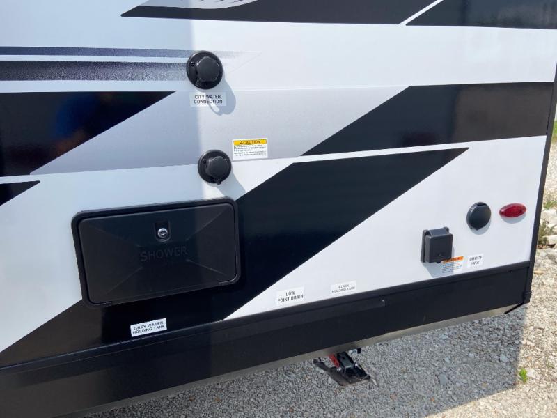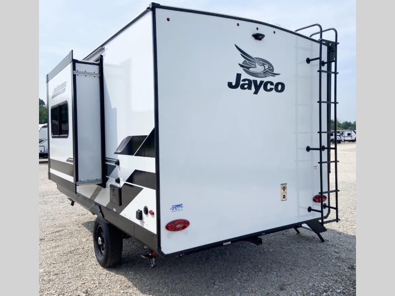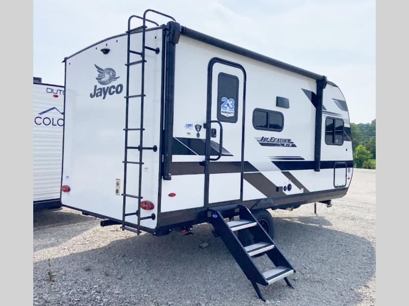 With any Jay Feather Air travel trailer by Jayco, you will enjoy lightweight towing and a variety of features to make each camping trip count! The Climate Shield insulation system helps extend your camping season by keeping you comfortable even in extreme weather conditions, and the Rock Solid stabilizer system means set up will be a breeze. An 18" rear roof ladder lets you easily clean the top of your Magnum Truss roof, and the 2" receiver will be perfect for your bike rack. The Overland 1 Solar Package with a 200W solar panel and 30-amp controller will provide off-grid capabilities, or you can can choose the optional Overland 2 Solar Package with two panels instead! Each Jay Feather Air includes residential-style seamless countertops inside, along with stainless steel sinks, decorative backsplash, and decorative roller shades with a reflective barrier to help keep the sun's rays out.