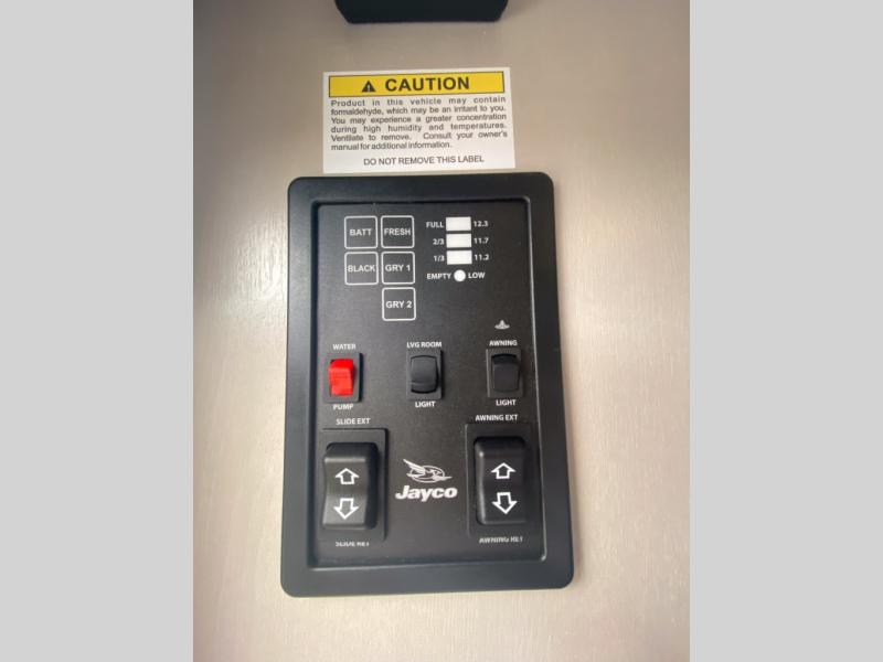 With any Jay Feather Air travel trailer by Jayco, you will enjoy lightweight towing and a variety of features to make each camping trip count! The Climate Shield insulation system helps extend your camping season by keeping you comfortable even in extreme weather conditions, and the Rock Solid stabilizer system means set up will be a breeze. An 18" rear roof ladder lets you easily clean the top of your Magnum Truss roof, and the 2" receiver will be perfect for your bike rack. The Overland 1 Solar Package with a 200W solar panel and 30-amp controller will provide off-grid capabilities, or you can can choose the optional Overland 2 Solar Package with two panels instead! Each Jay Feather Air includes residential-style seamless countertops inside, along with stainless steel sinks, decorative backsplash, and decorative roller shades with a reflective barrier to help keep the sun's rays out.