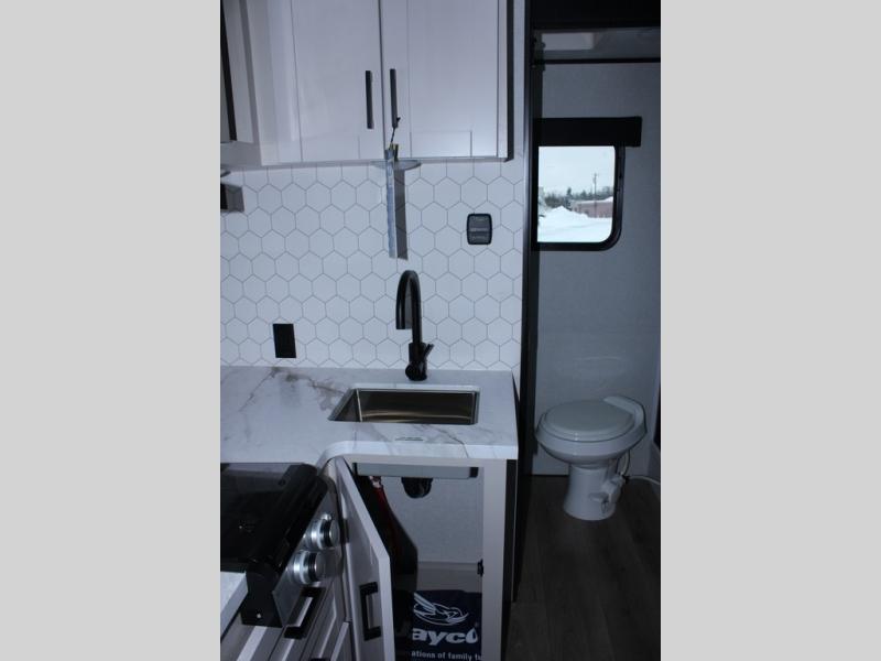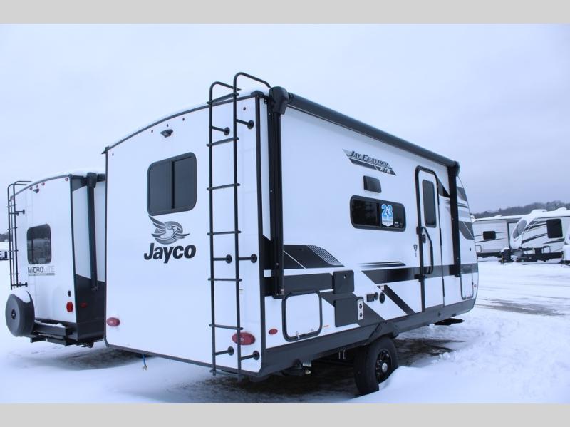 With any Jay Feather Air travel trailer by Jayco, you will enjoy lightweight towing and a variety of features to make each camping trip count! The Climate Shield insulation system helps extend your camping season by keeping you comfortable even in extreme weather conditions, and the Rock Solid stabilizer system means set up will be a breeze. An 18" rear roof ladder lets you easily clean the top of your Magnum Truss roof, and the 2" receiver will be perfect for your bike rack. The Overland 1 Solar Package with a 200W solar panel and 30-amp controller will provide off-grid capabilities, or you can can choose the optional Overland 2 Solar Package with two panels instead! Each Jay Feather Air includes residential-style seamless countertops inside, along with stainless steel sinks, decorative backsplash, and decorative roller shades with a reflective barrier to help keep the sun's rays out.