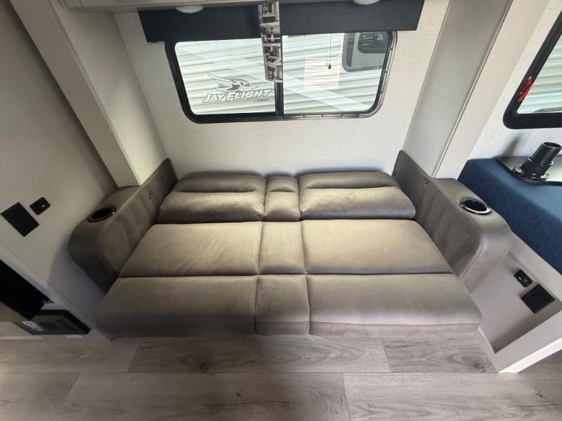 With any Jay Feather Air travel trailer by Jayco, you will enjoy lightweight towing and a variety of features to make each camping trip count! The Climate Shield insulation system helps extend your camping season by keeping you comfortable even in extreme weather conditions, and the Rock Solid stabilizer system means set up will be a breeze. An 18" rear roof ladder lets you easily clean the top of your Magnum Truss roof, and the 2" receiver will be perfect for your bike rack. The Overland 1 Solar Package with a 200W solar panel and 30-amp controller will provide off-grid capabilities, or you can can choose the optional Overland 2 Solar Package with two panels instead! Each Jay Feather Air includes residential-style seamless countertops inside, along with stainless steel sinks, decorative backsplash, and decorative roller shades with a reflective barrier to help keep the sun's rays out.