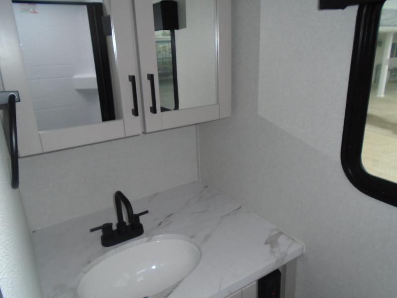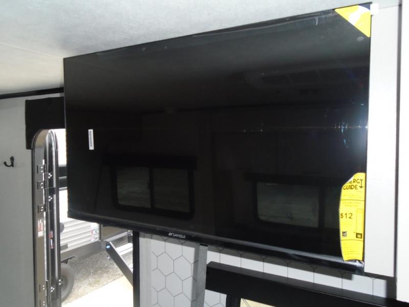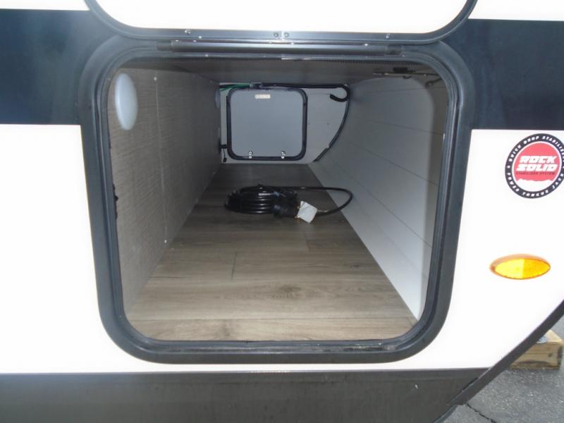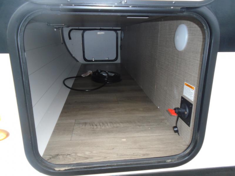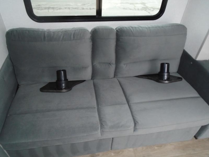 This travel trailer will feel just like home with its front queen bed, full rear bath, and fully-equipped kitchen! There is a jack-knife sofa slide out where you can relax each day, and there are swivel tables so you can enjoy meals here too. The LED Smart TV will let you stay in and watch movies if the weather isn't cooperating, or you can grab the fishing gear from the outside storage and weather the storm! You'll also find plenty of interior storage in the multiple overhead cabinets and the bath medicine cabinet!