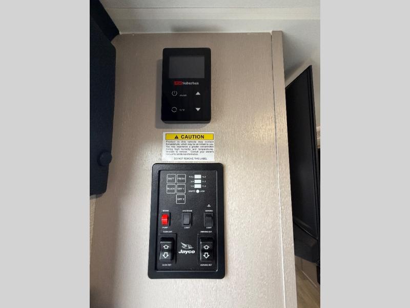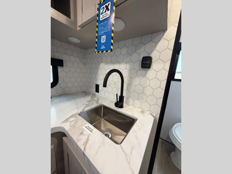 With any Jay Feather Air travel trailer by Jayco, you will enjoy lightweight towing and a variety of features to make each camping trip count! The Climate Shield insulation system helps extend your camping season by keeping you comfortable even in extreme weather conditions, and the Rock Solid stabilizer system means set up will be a breeze. An 18" rear roof ladder lets you easily clean the top of your Magnum Truss roof, and the 2" receiver will be perfect for your bike rack. The Overland 1 Solar Package with a 200W solar panel and 30-amp controller will provide off-grid capabilities, or you can can choose the optional Overland 2 Solar Package with two panels instead! Each Jay Feather Air includes residential-style seamless countertops inside, along with stainless steel sinks, decorative backsplash, and decorative roller shades with a reflective barrier to help keep the sun's rays out.