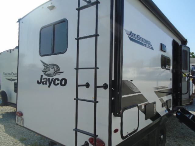 With any Jay Feather Air travel trailer by Jayco, you will enjoy lightweight towing and a variety of features to make each camping trip count! The Climate Shield insulation system helps extend your camping season by keeping you comfortable even in extreme weather conditions, and the Rock Solid stabilizer system means set up will be a breeze. An 18" rear roof ladder lets you easily clean the top of your Magnum Truss roof, and the 2" receiver will be perfect for your bike rack. The Overland 1 Solar Package with a 200W solar panel and 30-amp controller will provide off-grid capabilities, or you can can choose the optional Overland 2 Solar Package with two panels instead! Each Jay Feather Air includes residential-style seamless countertops inside, along with stainless steel sinks, decorative backsplash, and decorative roller shades with a reflective barrier to help keep the sun's rays out.