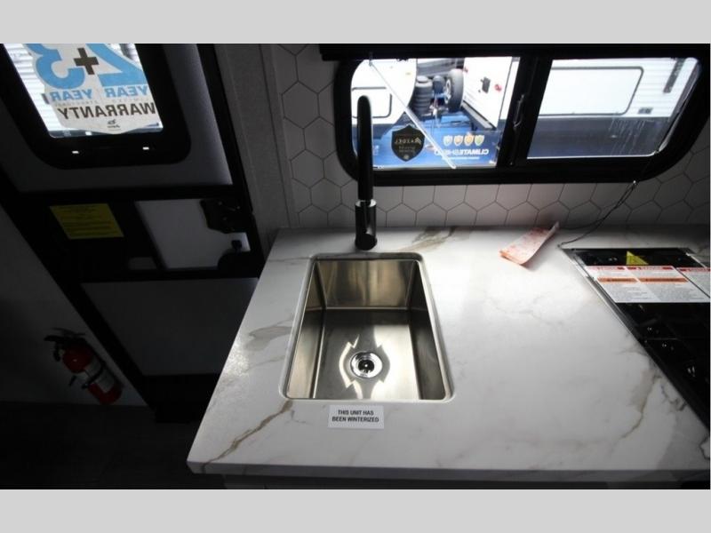 With any Jay Feather Air travel trailer by Jayco, you will enjoy lightweight towing and a variety of features to make each camping trip count! The Climate Shield insulation system helps extend your camping season by keeping you comfortable even in extreme weather conditions, and the Rock Solid stabilizer system means set up will be a breeze. An 18" rear roof ladder lets you easily clean the top of your Magnum Truss roof, and the 2" receiver will be perfect for your bike rack. The Overland 1 Solar Package with a 200W solar panel and 30-amp controller will provide off-grid capabilities, or you can can choose the optional Overland 2 Solar Package with two panels instead! Each Jay Feather Air includes residential-style seamless countertops inside, along with stainless steel sinks, decorative backsplash, and decorative roller shades with a reflective barrier to help keep the sun's rays out.