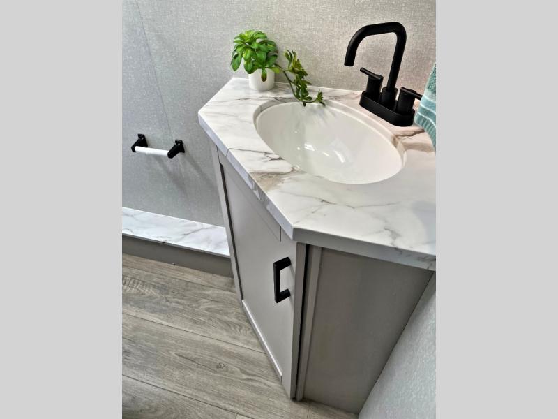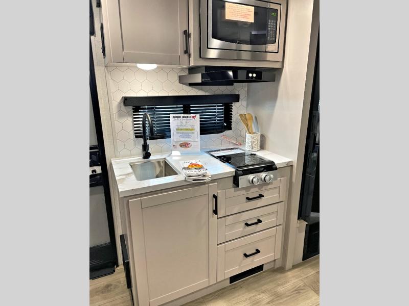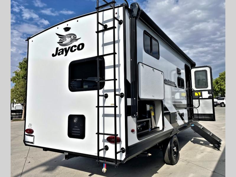 With any Jay Feather Air travel trailer by Jayco, you will enjoy lightweight towing and a variety of features to make each camping trip count! The Climate Shield insulation system helps extend your camping season by keeping you comfortable even in extreme weather conditions, and the Rock Solid stabilizer system means set up will be a breeze. An 18" rear roof ladder lets you easily clean the top of your Magnum Truss roof, and the 2" receiver will be perfect for your bike rack. The Overland 1 Solar Package with a 200W solar panel and 30-amp controller will provide off-grid capabilities, or you can can choose the optional Overland 2 Solar Package with two panels instead! Each Jay Feather Air includes residential-style seamless countertops inside, along with stainless steel sinks, decorative backsplash, and decorative roller shades with a reflective barrier to help keep the sun's rays out.
