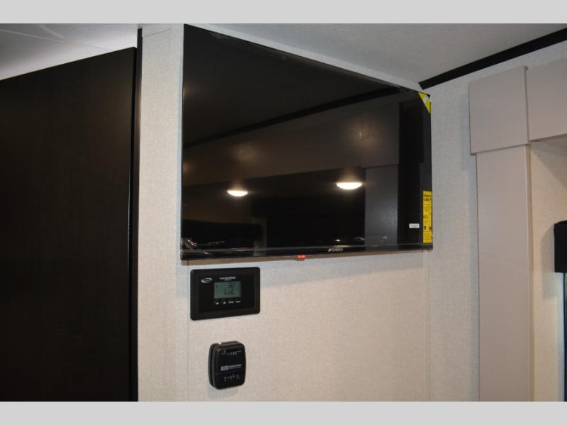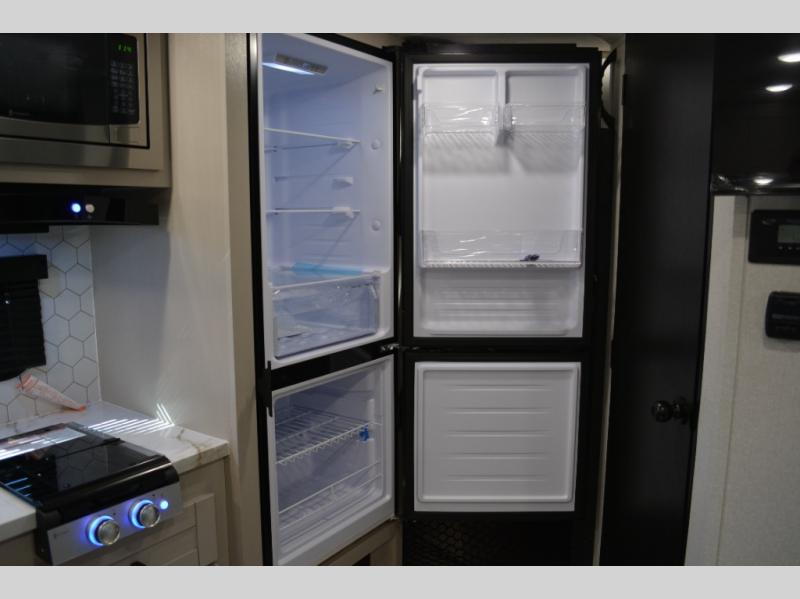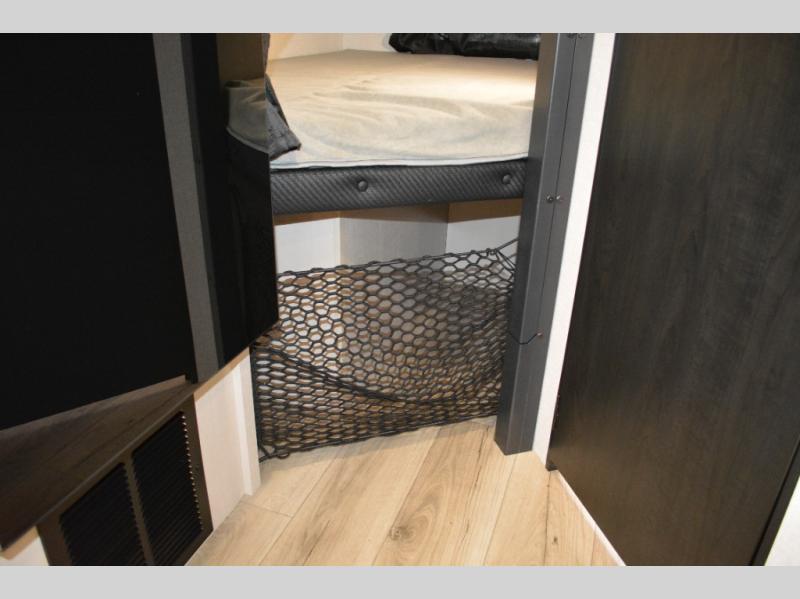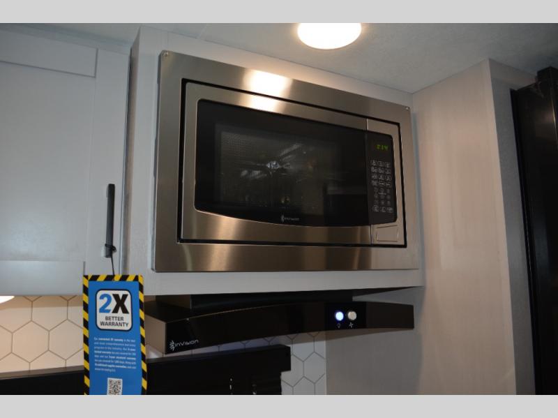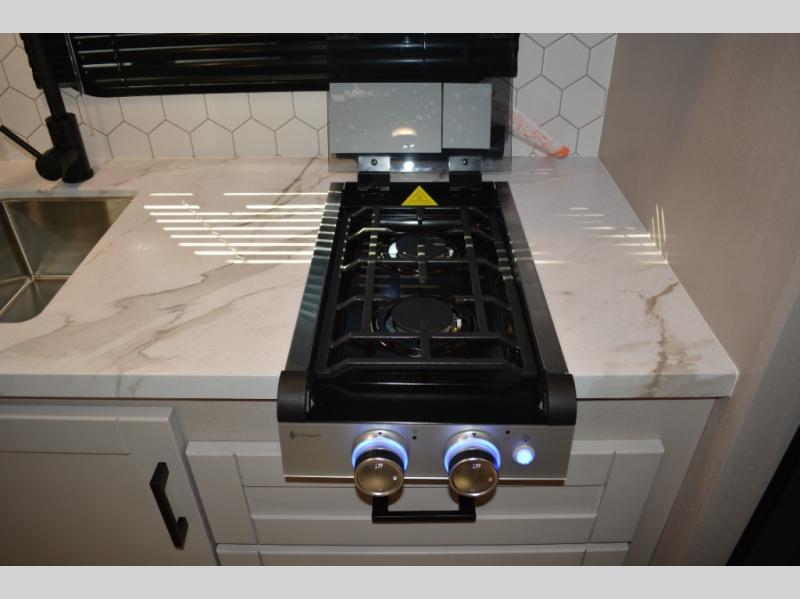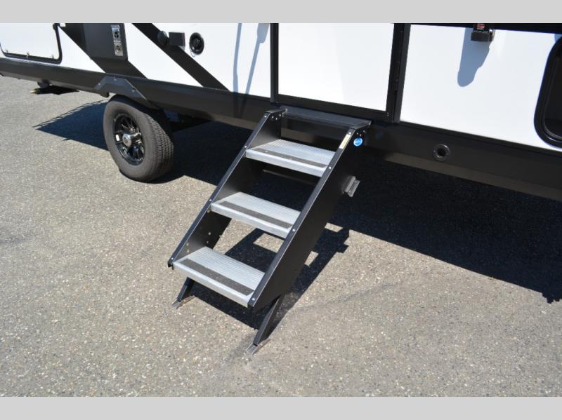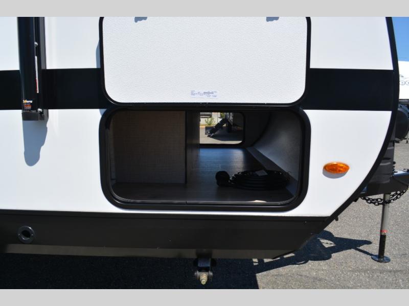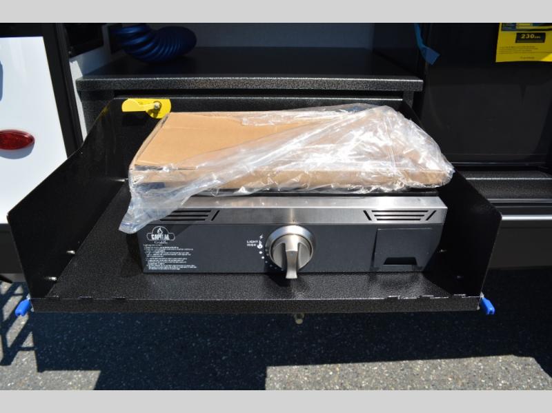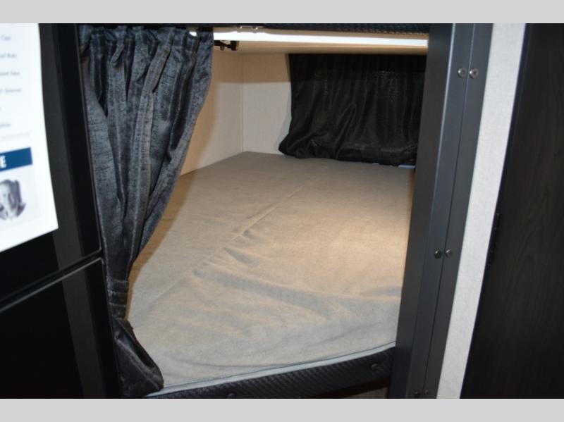 The double-size bunks in this travel trailer mean more friends and family can tag along! Once you arrive at the campground, you can put out the 15' power awning, unload the exterior storage and start lunch on the exterior griddle. A full kitchen indoors will let you make meals here when the weather isn't cooperating. The booth dinette slide will be perfect for meals times, game night, and even additional sleeping space. Up front, you'll find a sofa to relax on during the day and a Murphy bed to sleep on at night; how convenient!
