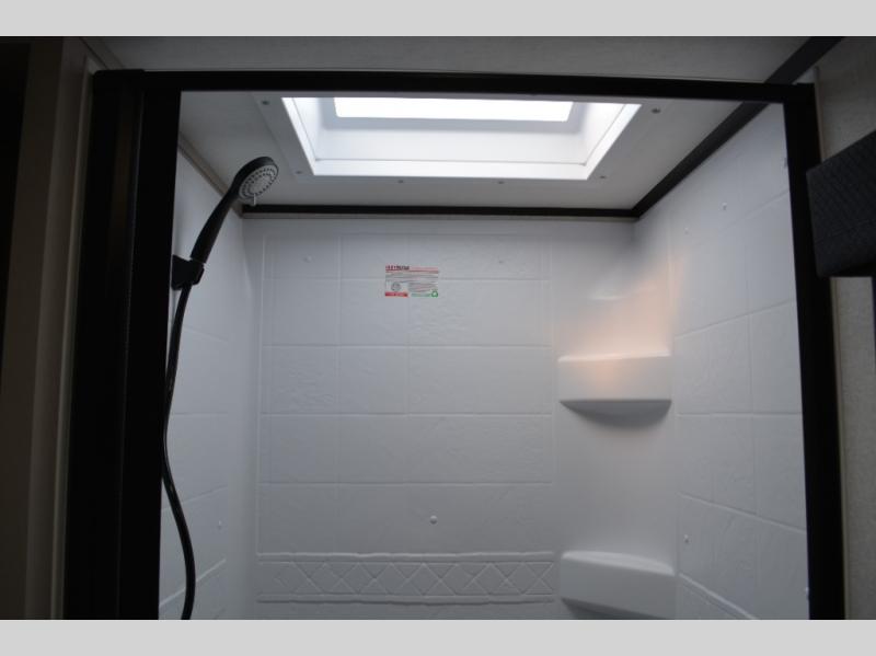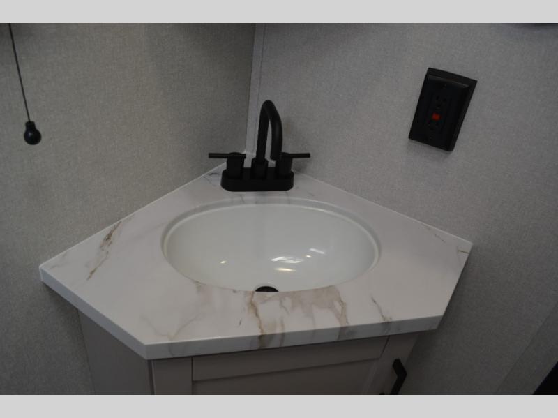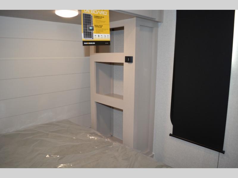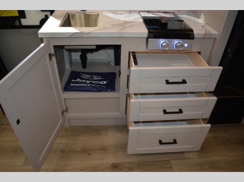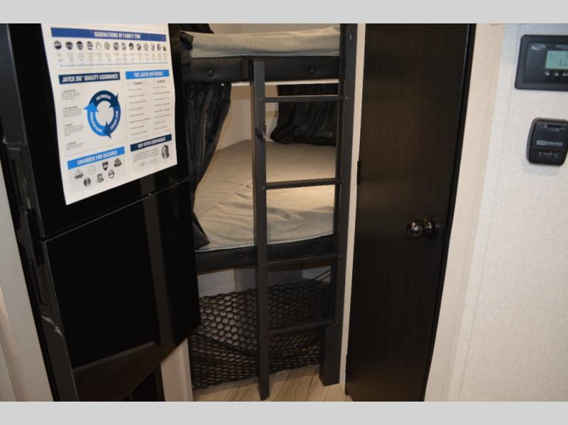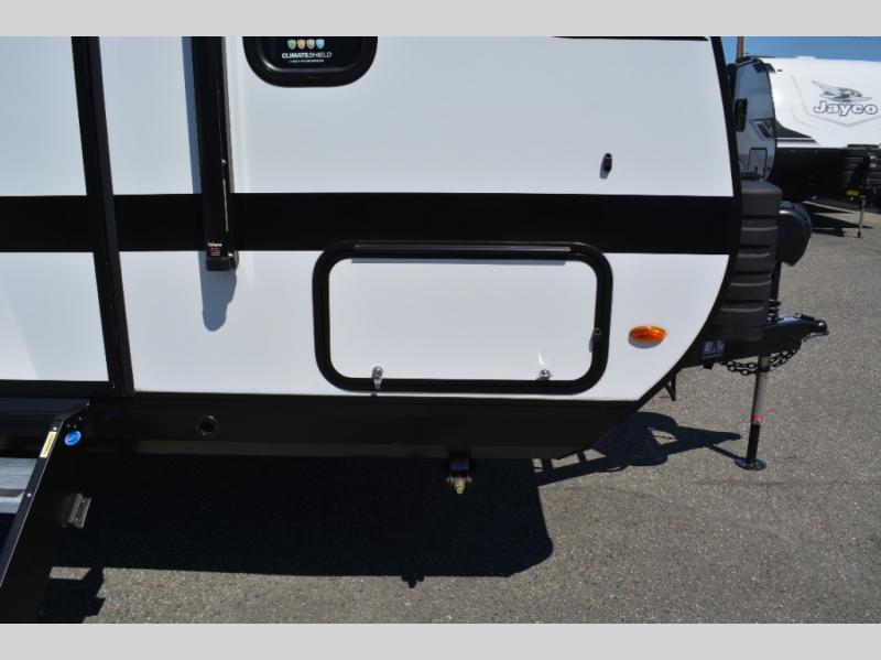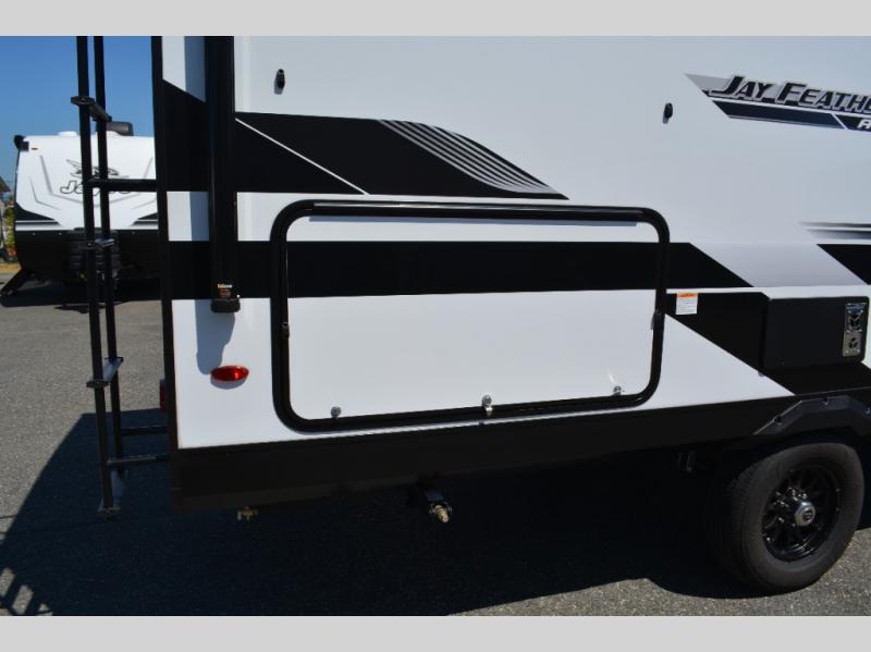 With any Jay Feather Air travel trailer by Jayco, you will enjoy lightweight towing and a variety of features to make each camping trip count! The Climate Shield insulation system helps extend your camping season by keeping you comfortable even in extreme weather conditions, and the Rock Solid stabilizer system means set up will be a breeze. An 18" rear roof ladder lets you easily clean the top of your Magnum Truss roof, and the 2" receiver will be perfect for your bike rack. The Overland 1 Solar Package with a 200W solar panel and 30-amp controller will provide off-grid capabilities, or you can can choose the optional Overland 2 Solar Package with two panels instead! Each Jay Feather Air includes residential-style seamless countertops inside, along with stainless steel sinks, decorative backsplash, and decorative roller shades with a reflective barrier to help keep the sun's rays out.