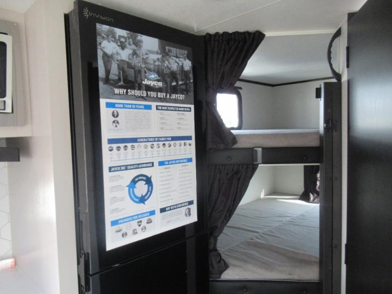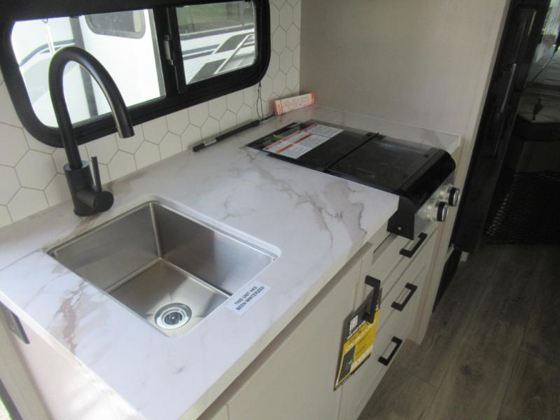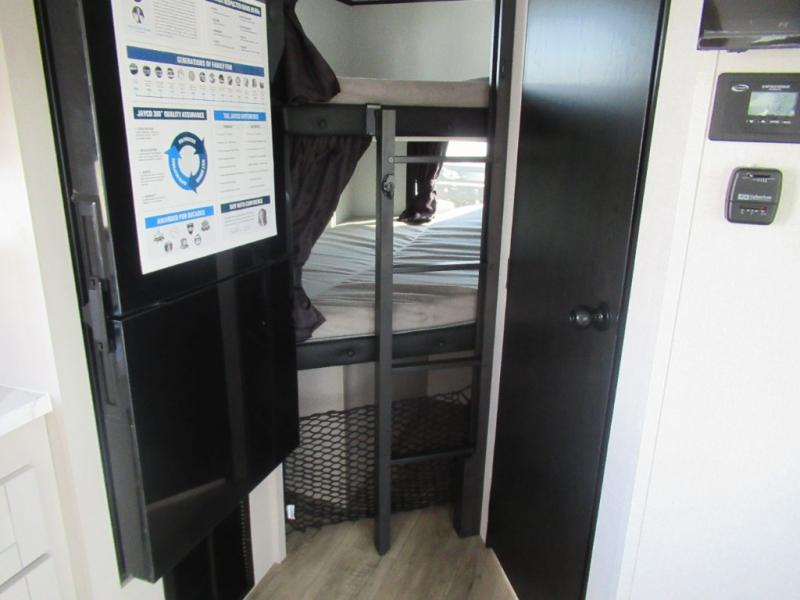 With any Jay Feather Air travel trailer by Jayco, you will enjoy lightweight towing and a variety of features to make each camping trip count! The Climate Shield insulation system helps extend your camping season by keeping you comfortable even in extreme weather conditions, and the Rock Solid stabilizer system means set up will be a breeze. An 18" rear roof ladder lets you easily clean the top of your Magnum Truss roof, and the 2" receiver will be perfect for your bike rack. The Overland 1 Solar Package with a 200W solar panel and 30-amp controller will provide off-grid capabilities, or you can can choose the optional Overland 2 Solar Package with two panels instead! Each Jay Feather Air includes residential-style seamless countertops inside, along with stainless steel sinks, decorative backsplash, and decorative roller shades with a reflective barrier to help keep the sun's rays out.