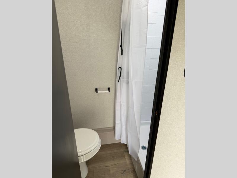 You'll love camping in this lightweight and versatile travel trailer! Once you've arrived at the campground and have unpacked your things, you can make a quick lunch on the two-burner cooktop. There are two 32" x 74" twin-size bed/benches that include a table for a king-size bed conversion, and you'll find a large overhead cabinet here to keep books or board games stored away. A private bath includes a shower and a toilet to easily clean up each day, and a dresser just outside the bath will let you keep clothes or towels organized. Don't let this cozy travel trailer slip away!