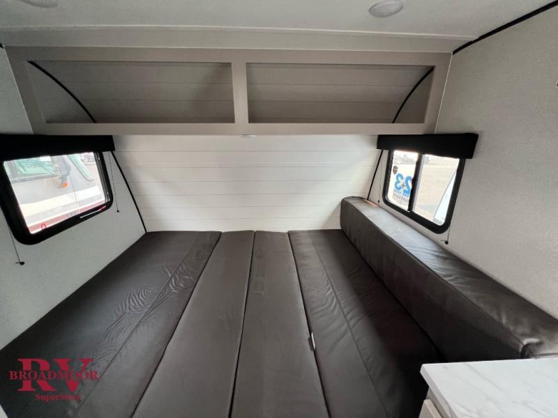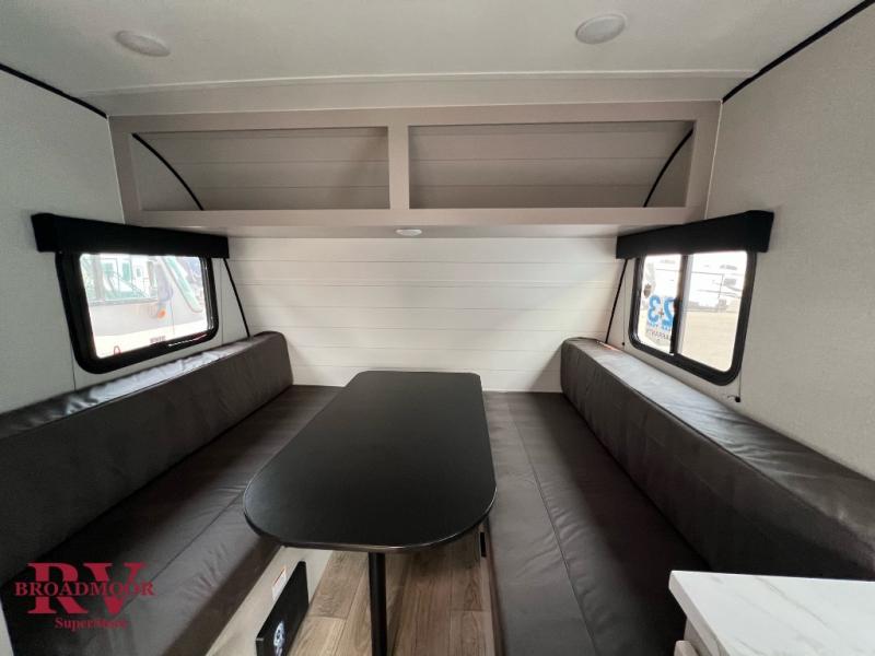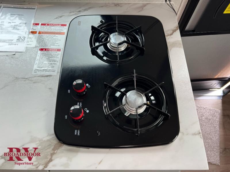You'll love camping in this lightweight and versatile travel trailer! Once you've arrived at the campground and have unpacked your things, you can make a quick lunch on the two-burner cooktop. There are two 32" x 74" twin-size bed/benches that include a table for a king-size bed conversion, and you'll find a large overhead cabinet here to keep books or board games stored away. A private bath includes a shower and a toilet to easily clean up each day, and a dresser just outside the bath will let you keep clothes or towels organized. Don't let this cozy travel trailer slip away!