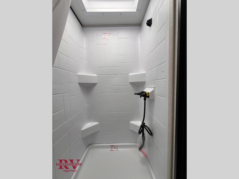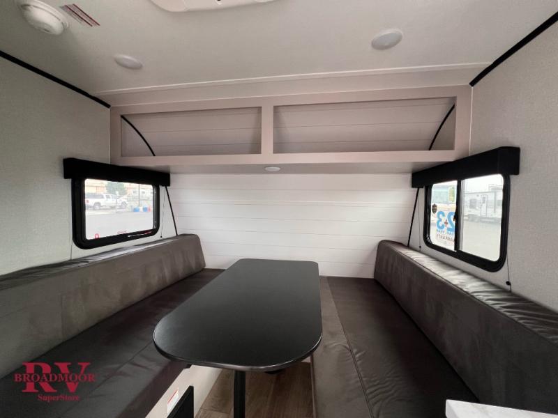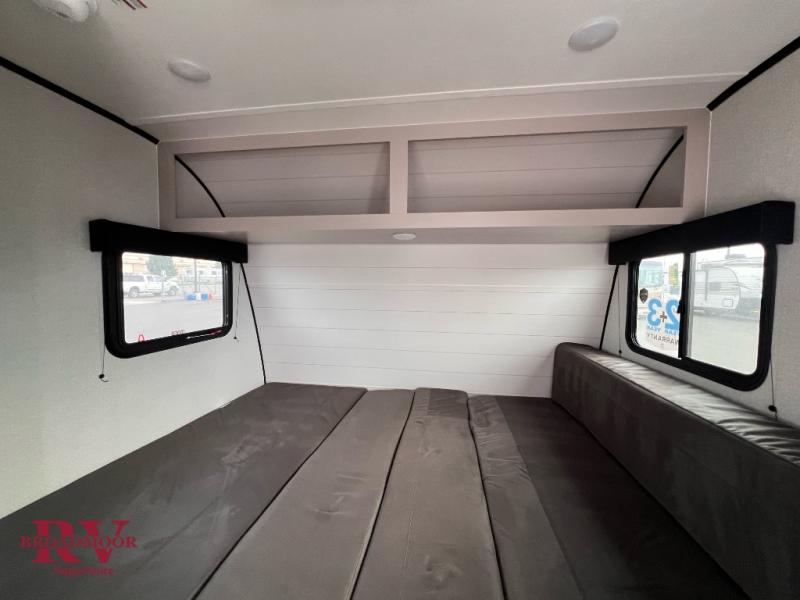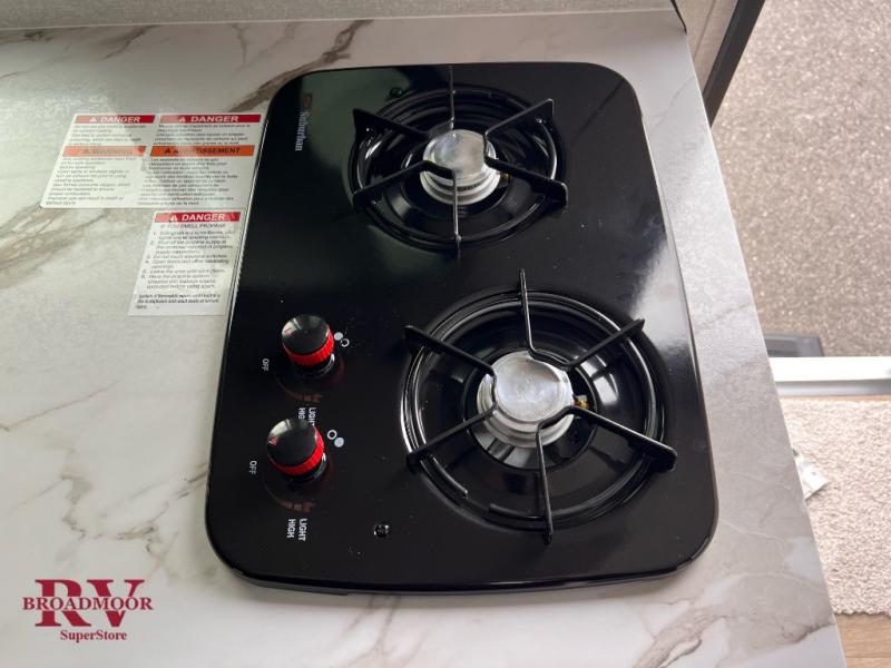You'll love camping in this lightweight and versatile travel trailer! Once you've arrived at the campground and have unpacked your things, you can make a quick lunch on the two-burner cooktop. There are two 32" x 74" twin-size bed/benches that include a table for a king-size bed conversion, and you'll find a large overhead cabinet here to keep books or board games stored away. A private bath includes a shower and a toilet to easily clean up each day, and a dresser just outside the bath will let you keep clothes or towels organized. Don't let this cozy travel trailer slip away!