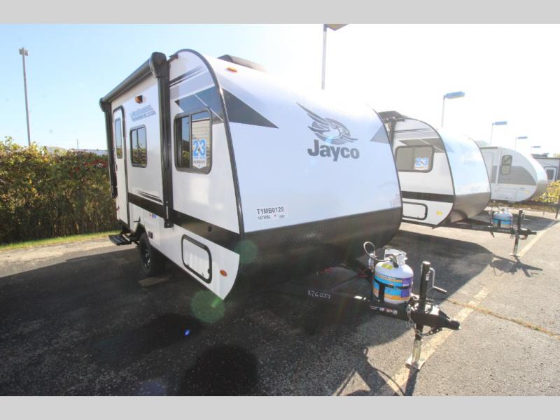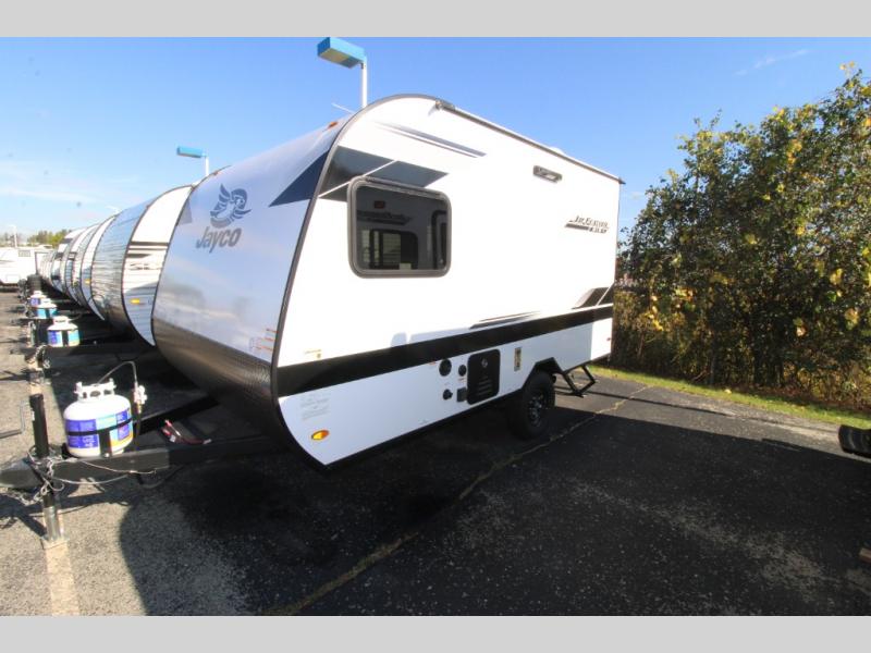 The Jay Feather Air SL travel trailer by Jayco is affordable, convenient, and lightweight for an easier tow! A Magnum Truss roof system and fully integrated A-frame provide a strong foundation to the trailer, plus there are galvanized-steel, impact resistant wheel wells for added protection. Some of the exterior conveniences you'll find include a front tongue jack and stabilizer jacks, roof mount solar prep, an exterior porch light, and G20 dark tinted privacy windows. Head inside to enjoy solid hardwood cabinet doors, residential-style kitchen countertops, a marine-grade toilet with foot flush, and vinyl flooring throughout that will be easy to keep clean. This super lite travel trailer is the perfect choice for rookie RVers and seasoned campers alike!