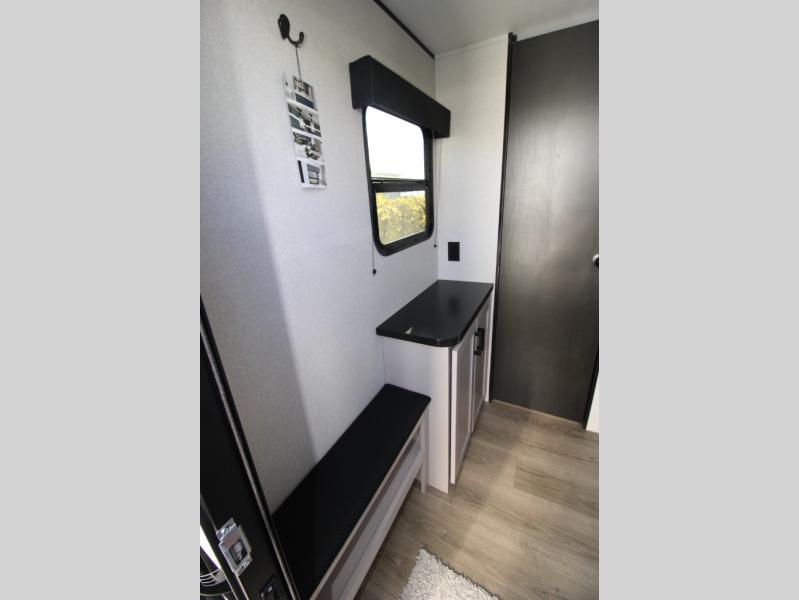 You'll love camping in this lightweight and versatile travel trailer! Once you've arrived at the campground and have unpacked your things, you can make a quick lunch on the two-burner cooktop. There are two 32" x 74" twin-size bed/benches that include a table for a king-size bed conversion, and you'll find a large overhead cabinet here to keep books or board games stored away. A private bath includes a shower and a toilet to easily clean up each day, and a dresser just outside the bath will let you keep clothes or towels organized. Don't let this cozy travel trailer slip away!