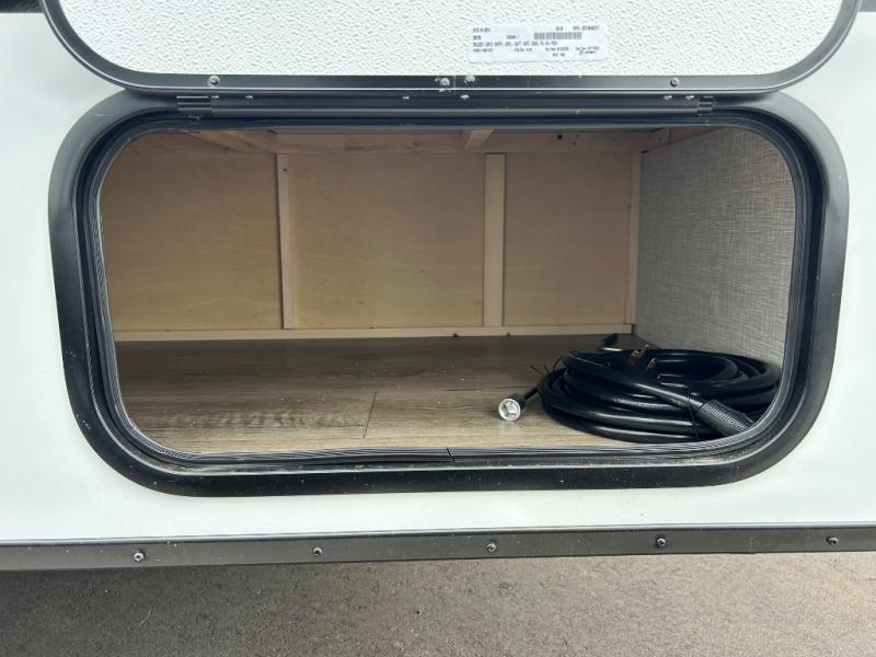 The Jay Feather Air SL travel trailer by Jayco is affordable, convenient, and lightweight for an easier tow! A Magnum Truss roof system and fully integrated A-frame provide a strong foundation to the trailer, plus there are galvanized-steel, impact resistant wheel wells for added protection. Some of the exterior conveniences you'll find include a front tongue jack and stabilizer jacks, roof mount solar prep, an exterior porch light, and G20 dark tinted privacy windows. Head inside to enjoy solid hardwood cabinet doors, residential-style kitchen countertops, a marine-grade toilet with foot flush, and vinyl flooring throughout that will be easy to keep clean. This super lite travel trailer is the perfect choice for rookie RVers and seasoned campers alike!