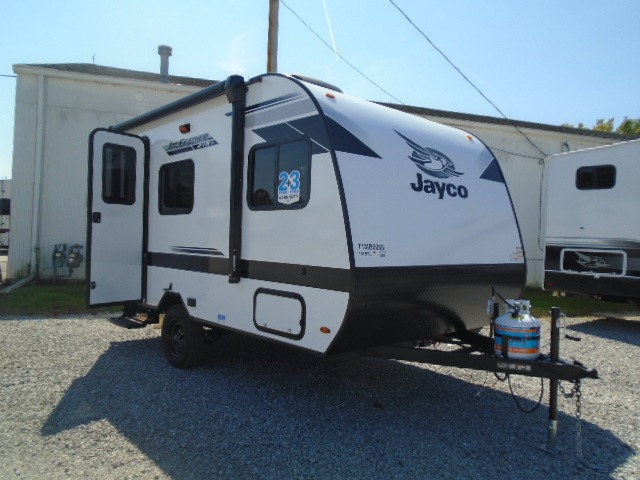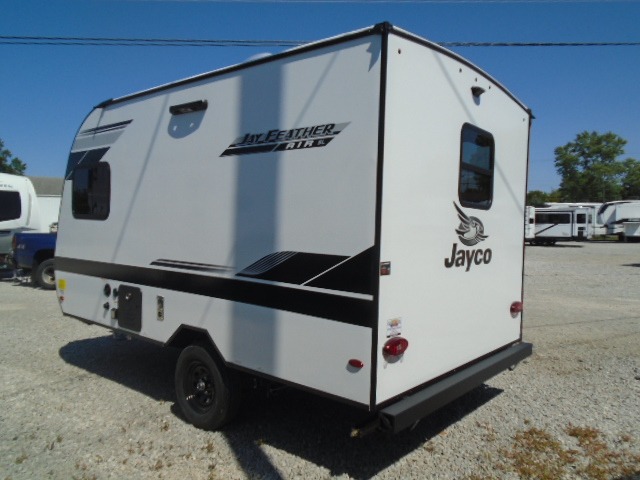 The Jay Feather Air SL travel trailer by Jayco is affordable, convenient, and lightweight for an easier tow! A Magnum Truss roof system and fully integrated A-frame provide a strong foundation to the trailer, plus there are galvanized-steel, impact resistant wheel wells for added protection. Some of the exterior conveniences you'll find include a front tongue jack and stabilizer jacks, roof mount solar prep, an exterior porch light, and G20 dark tinted privacy windows. Head inside to enjoy solid hardwood cabinet doors, residential-style kitchen countertops, a marine-grade toilet with foot flush, and vinyl flooring throughout that will be easy to keep clean. This super lite travel trailer is the perfect choice for rookie RVers and seasoned campers alike!