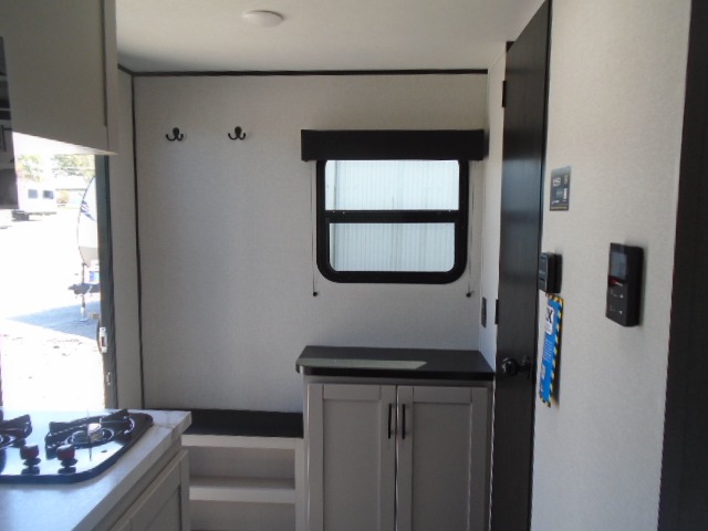 You'll love camping in this lightweight and versatile travel trailer! Once you've arrived at the campground and have unpacked your things, you can make a quick lunch on the two-burner cooktop. There are two 32" x 74" twin-size bed/benches that include a table for a king-size bed conversion, and you'll find a large overhead cabinet here to keep books or board games stored away. A private bath includes a shower and a toilet to easily clean up each day, and a dresser just outside the bath will let you keep clothes or towels organized. Don't let this cozy travel trailer slip away!